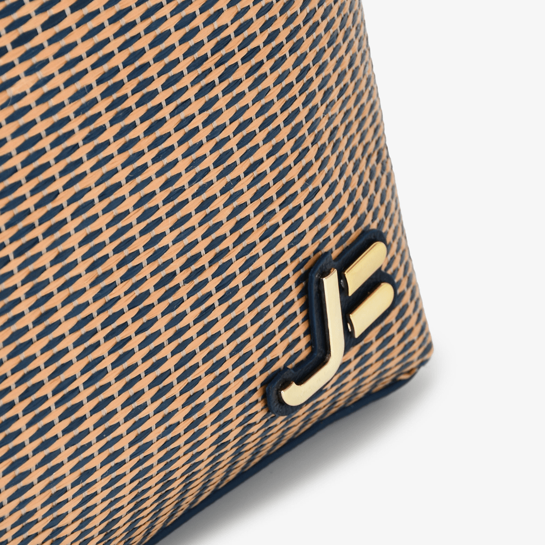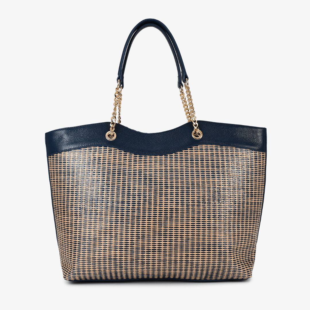 Bolsa Jorge Bischoff Feminina Ráfia Azul Marinho Couro -Grande