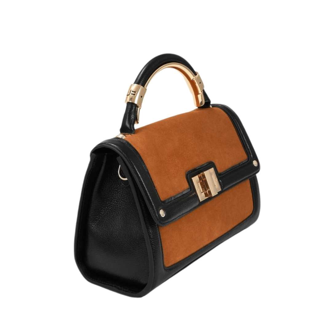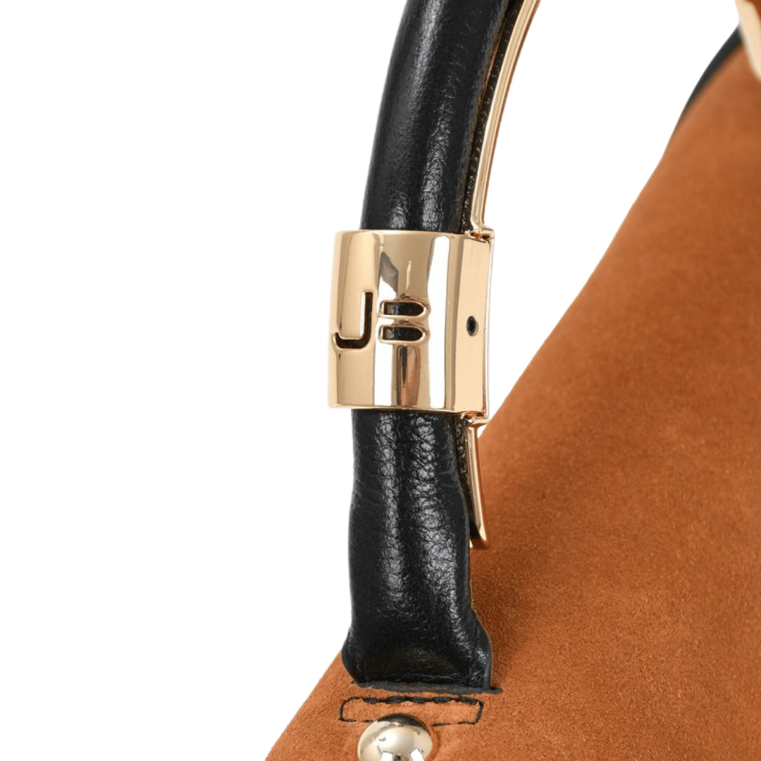 Detalhes em metal dourado e monograma da marca, reforçando o DNA luxuoso da Jorge Bischoff.