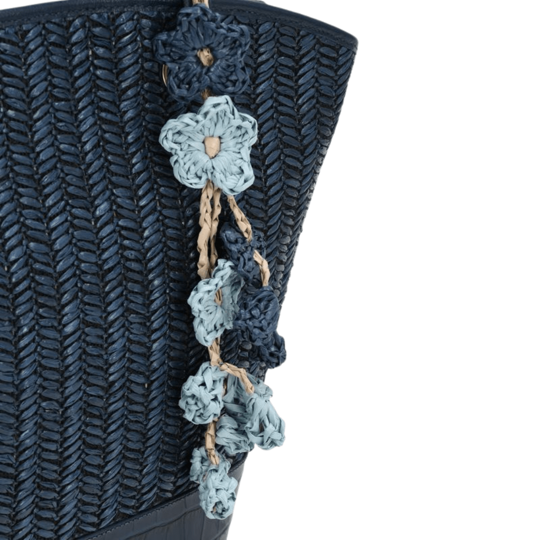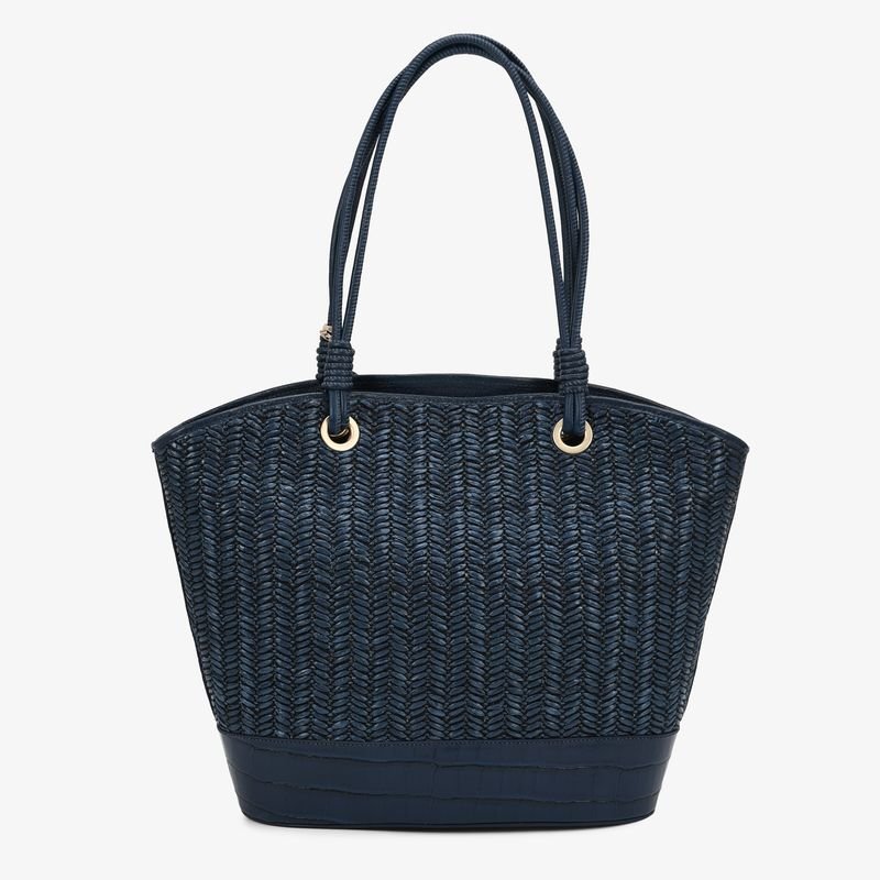 Bolsa Jorge Bischoff Feminina Shopping Azul Marinho Ráfia Couro Crocco