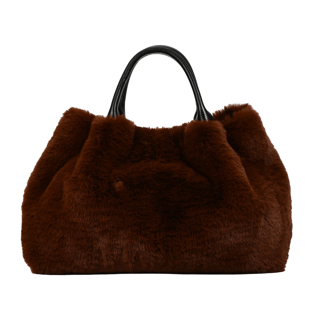 Material: Corpo em pelo de toque macio com alças em couro estruturado.