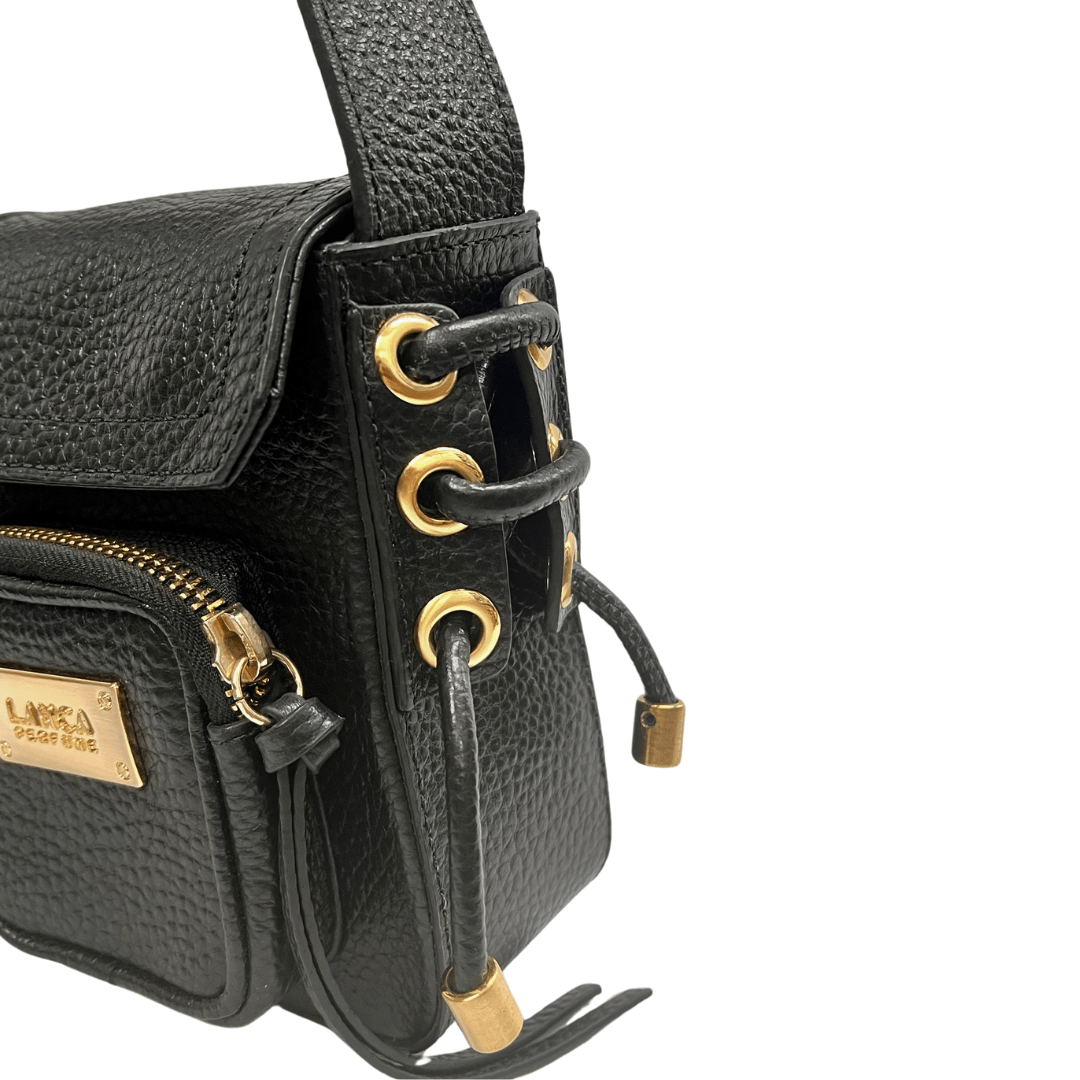 Bolsa Lança Perfume Feminina Média Preta em Couro
