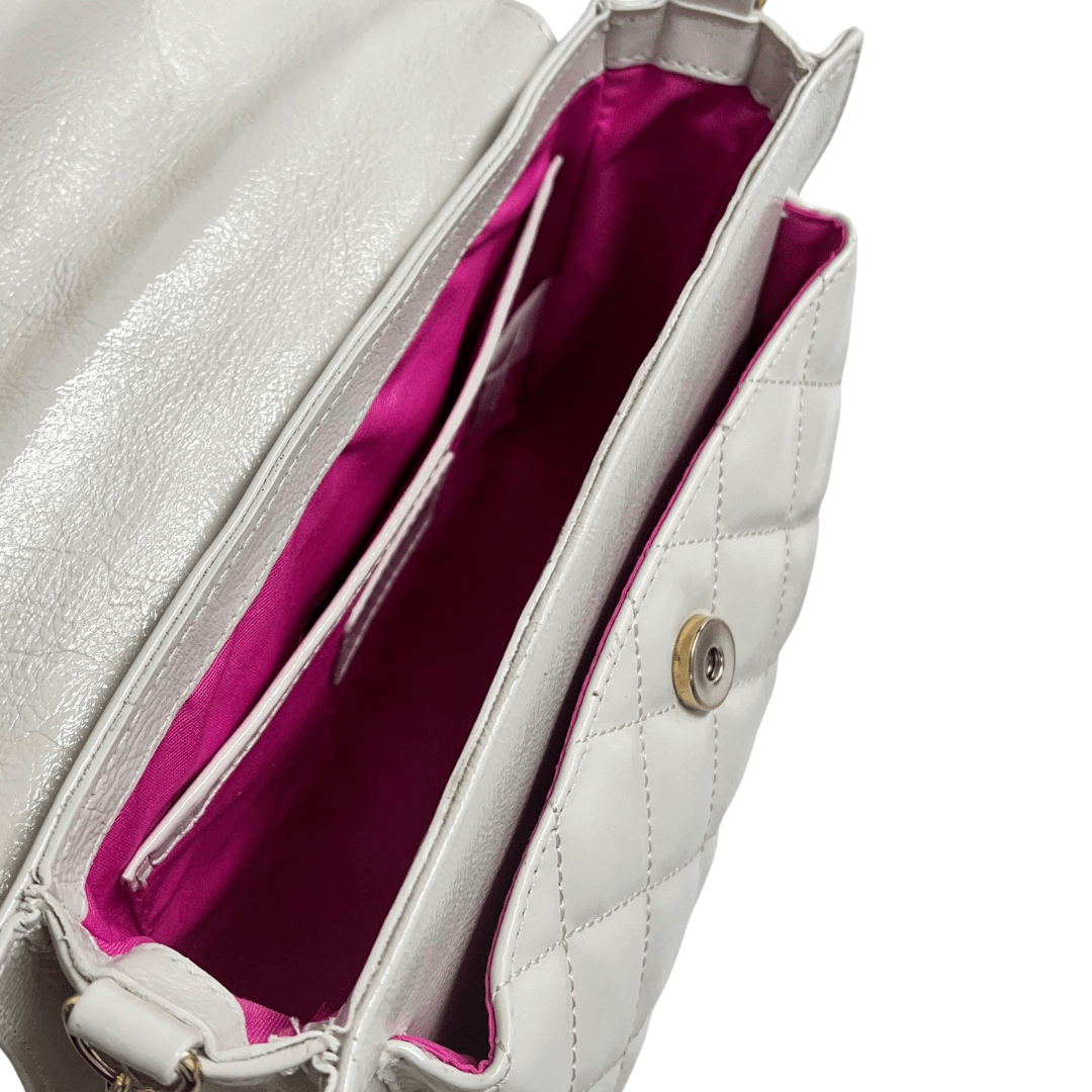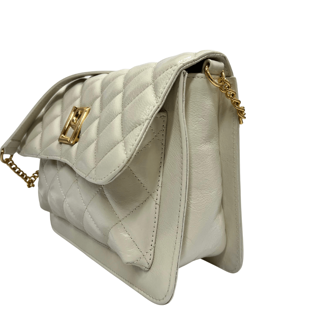 Bolsa Lança Perfume Feminina Matelassê Off White Couro – Média