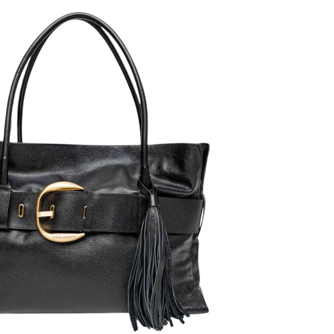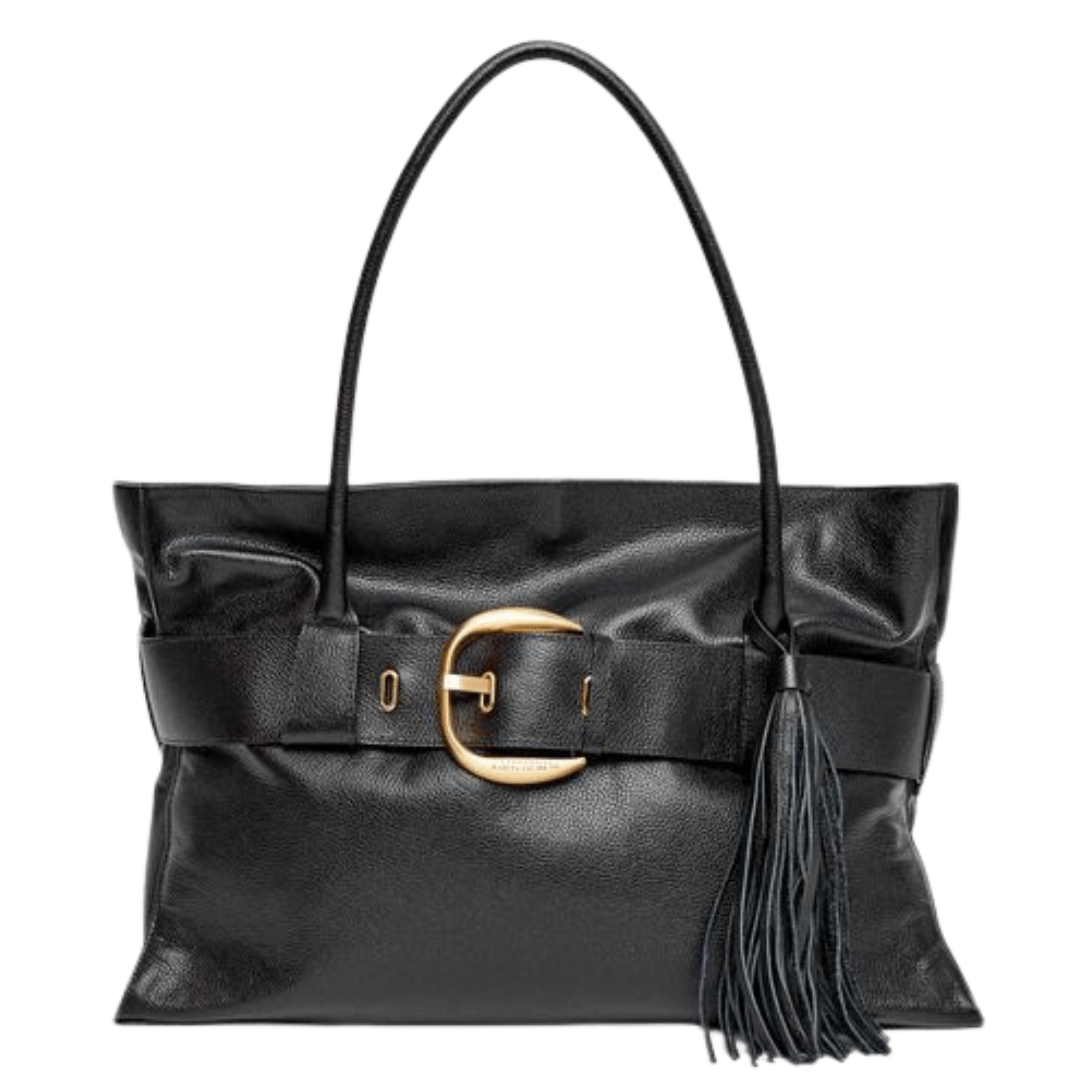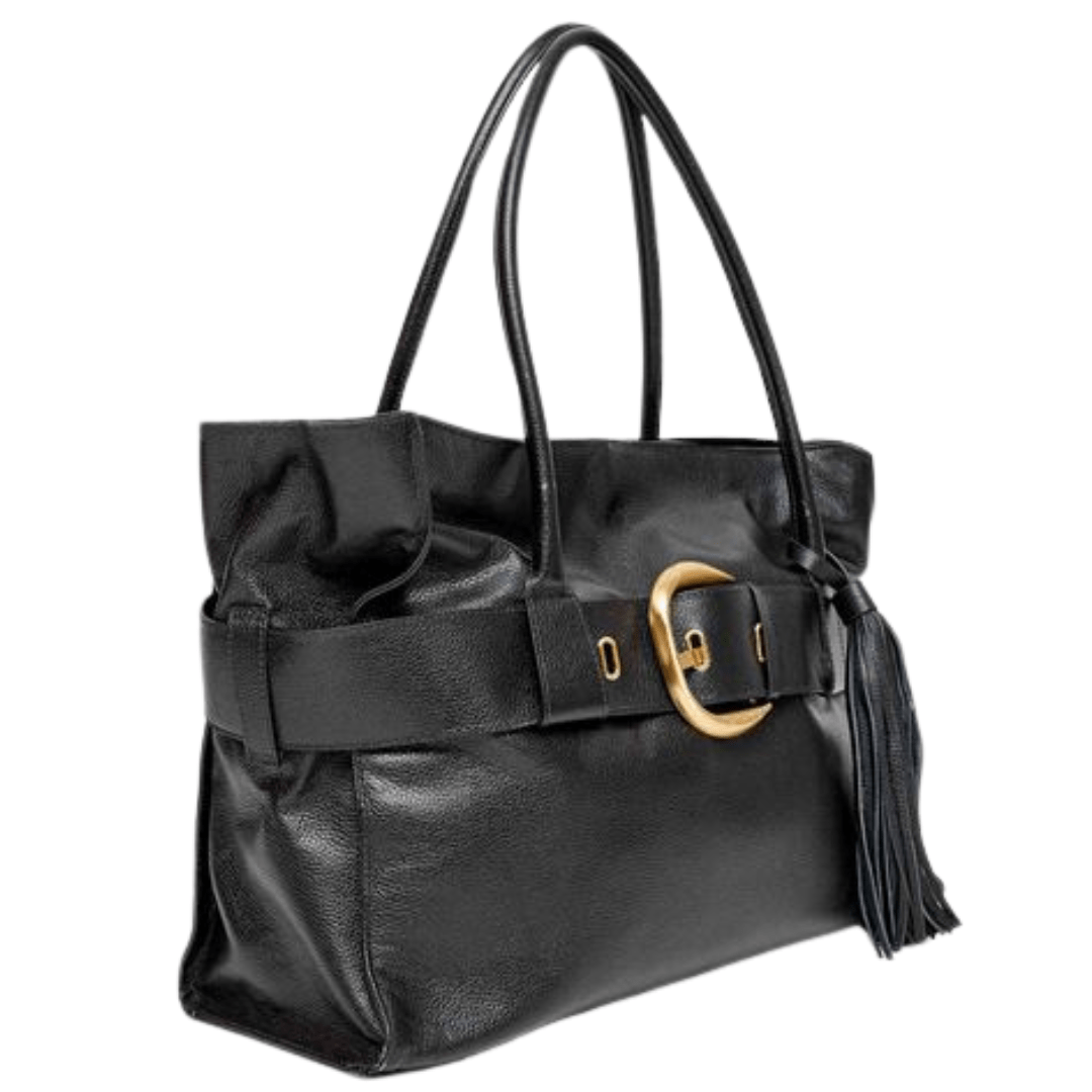 Bolsa Lança Perfume Shopping Maxi Fivela Preto Couro