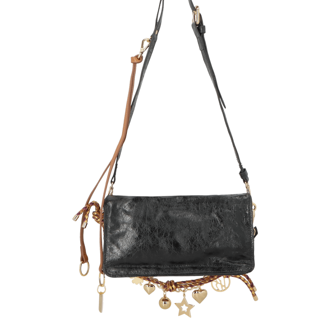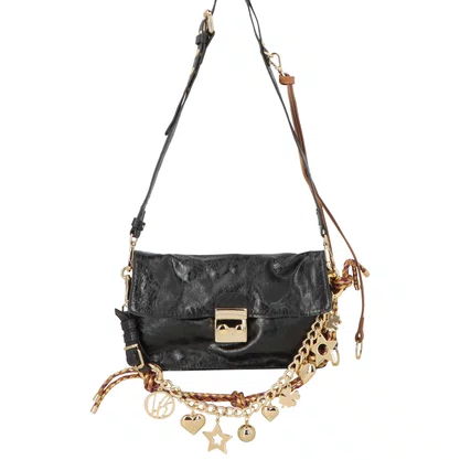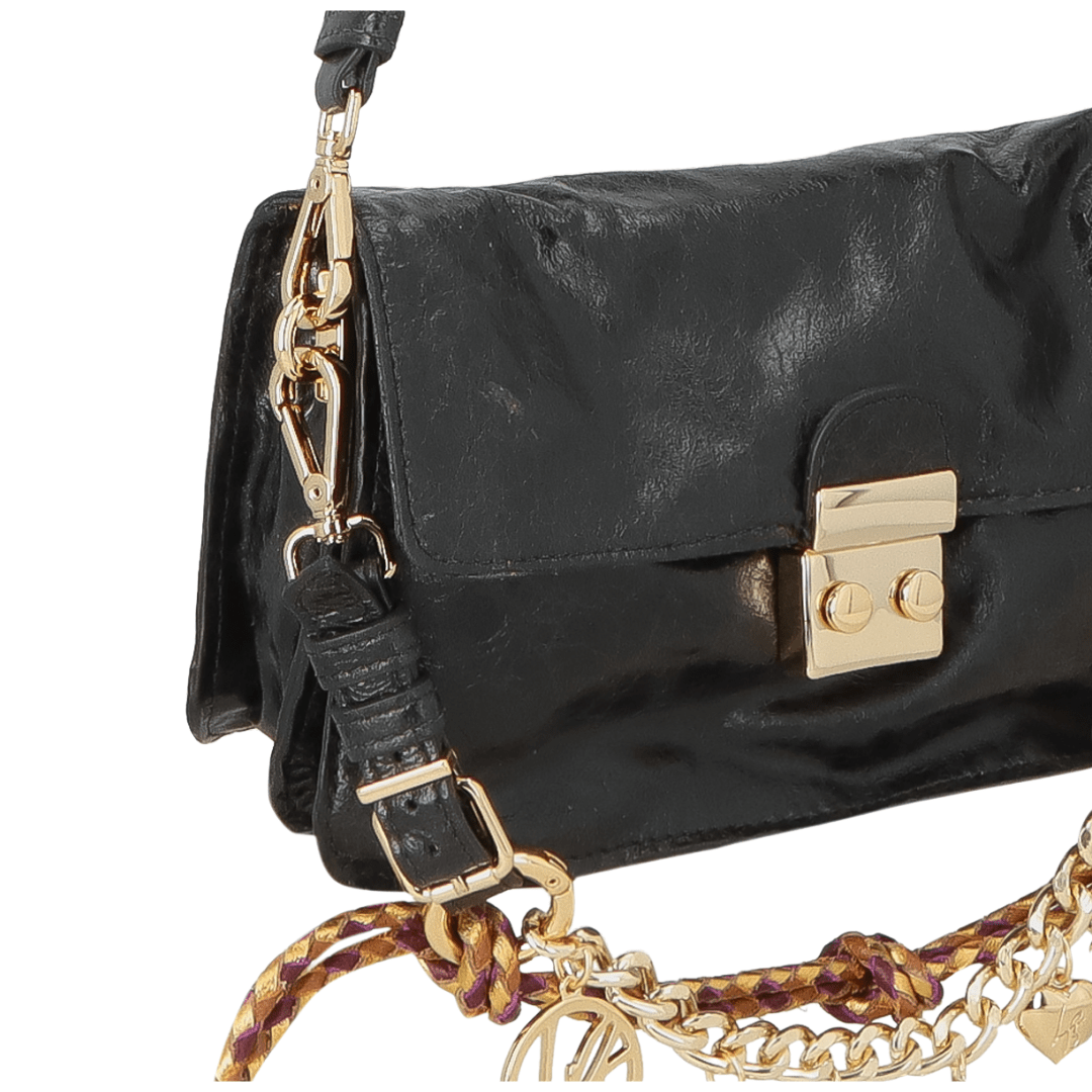 Bolsa Luiza Barcelos Baguete Feminina Preta Couro Estonado