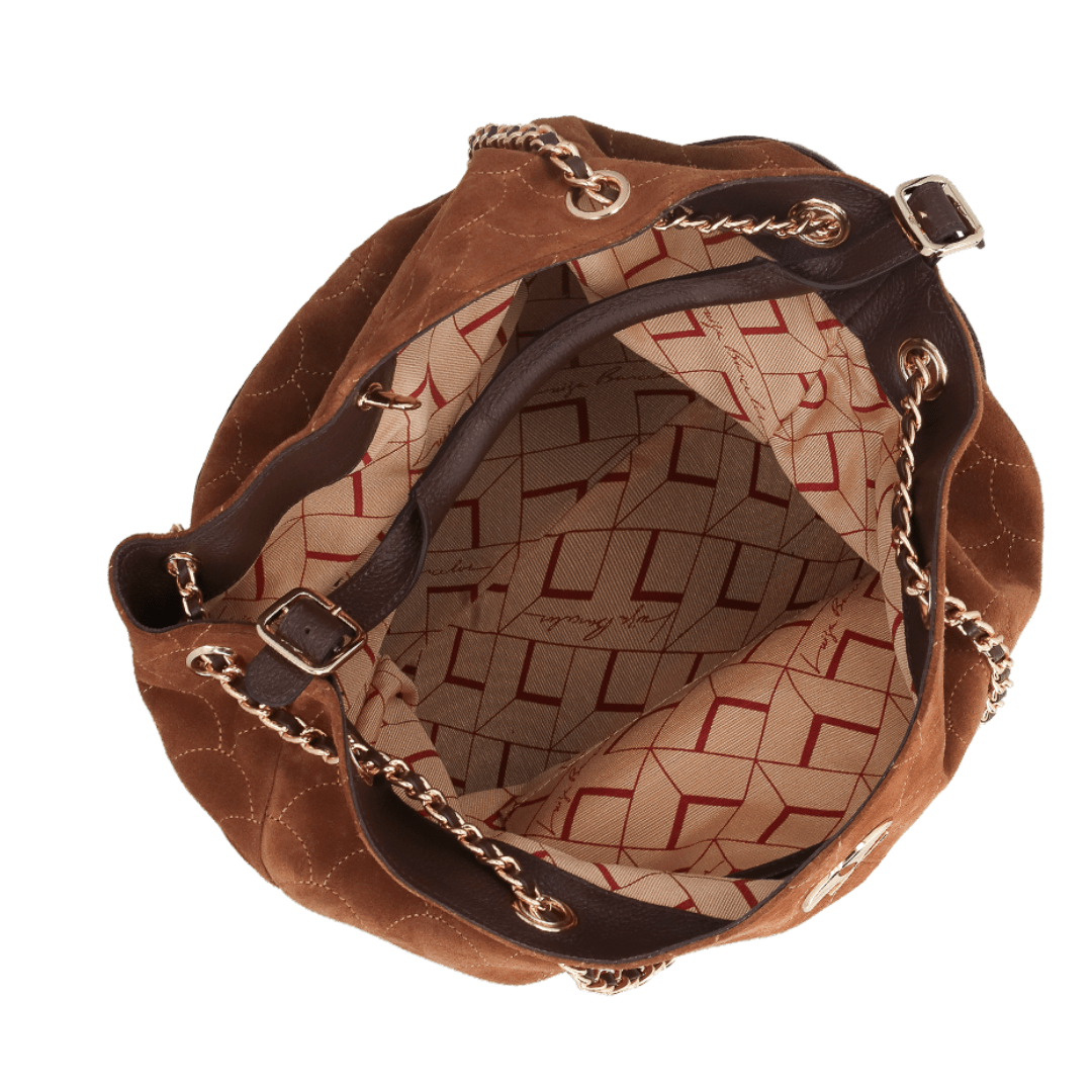 Bolsa Luiza Barcelos Feminina Caramelo Coffee Couro Camurça - Grande
