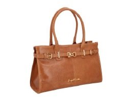 Bolsa Luiza Barcelos Feminina Caramelo Couro Fivela Dourada - Média