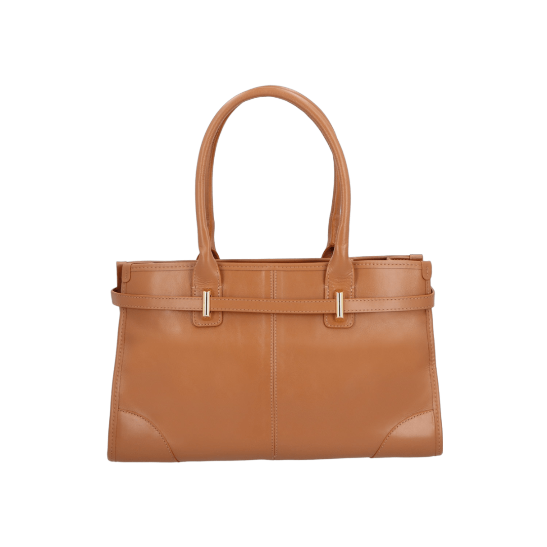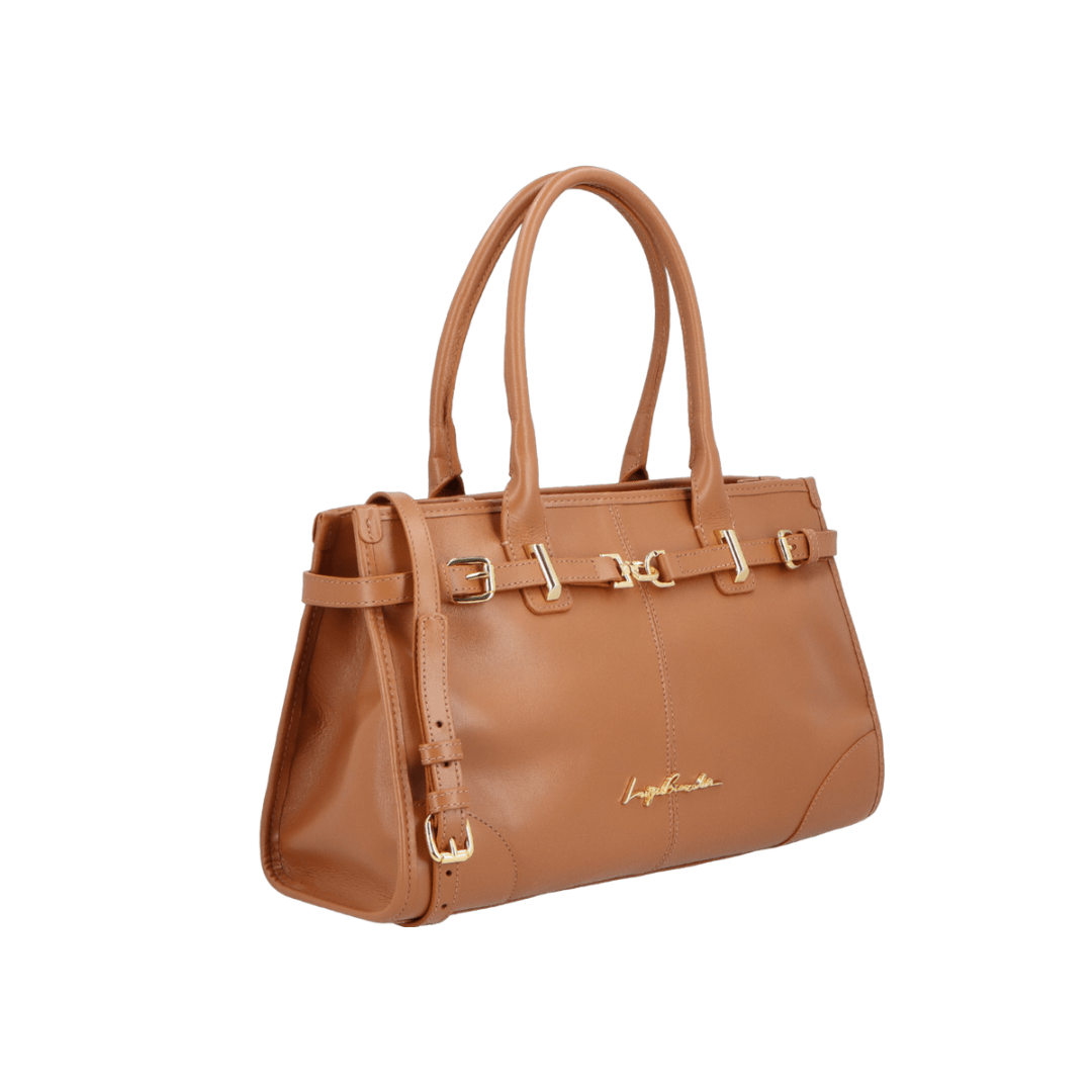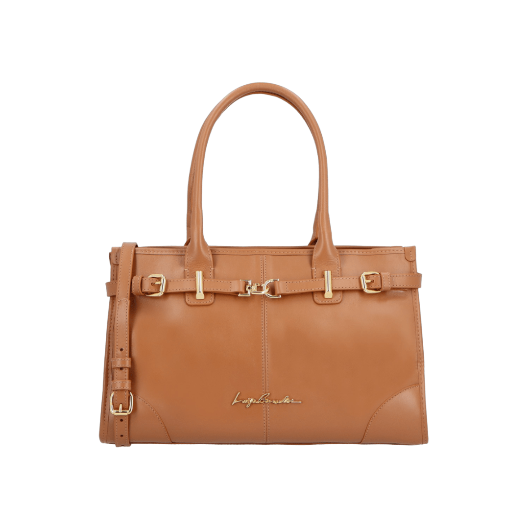 Bolsa Luiza Barcelos Média em Couro Caramelo com Fivela Dourada – Elegância e modernidade em cada detalhe
