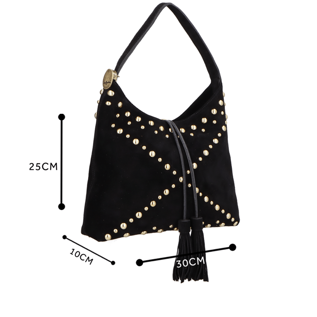 A Bolsa Luiza Barcelos Preto Camurça é a escolha perfeita para mulheres que valorizam elegância com personalidade. Seu design boho chic recebe um toque refinado graças à camurça no tom preto e aos detalhes marcantes em metal, criando uma peça que se destaca sem esforço.