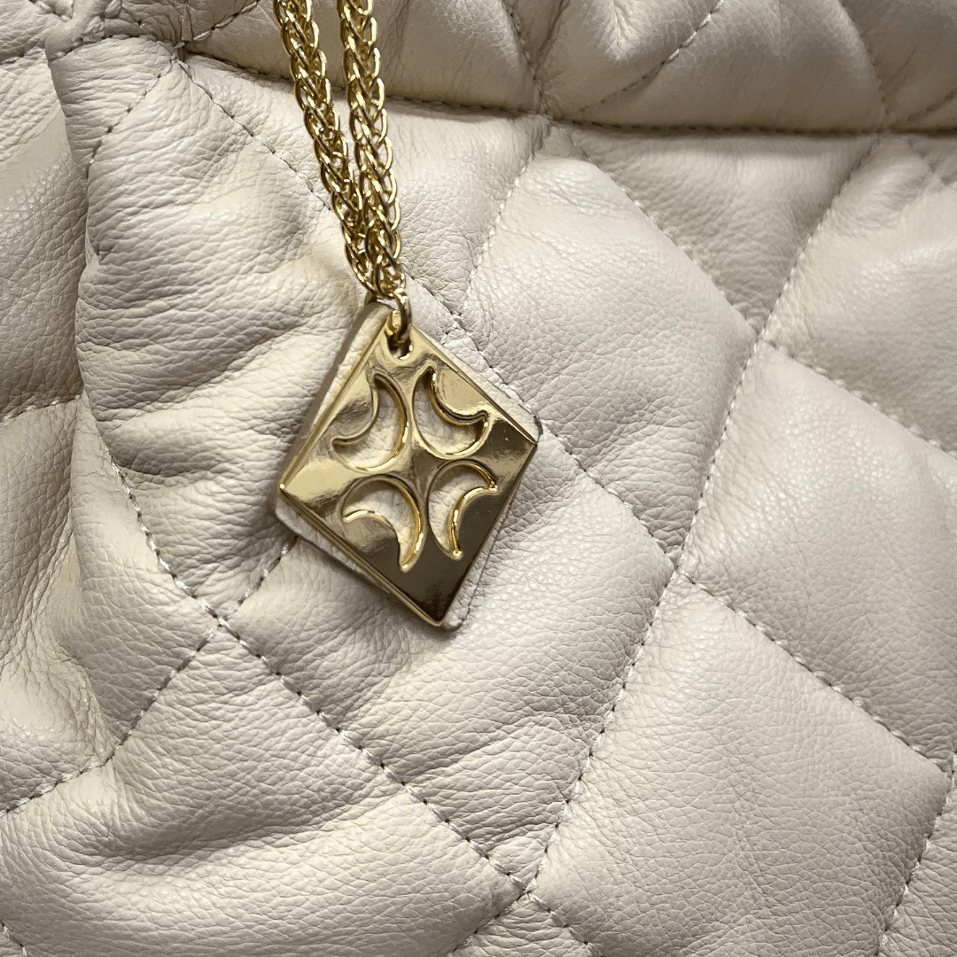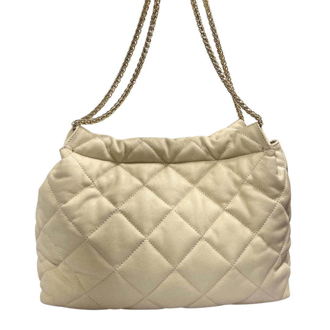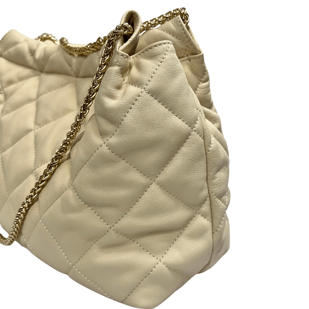 Bolsa Luz da Lua Feminina Matelassê Marfim Couro – Grande
