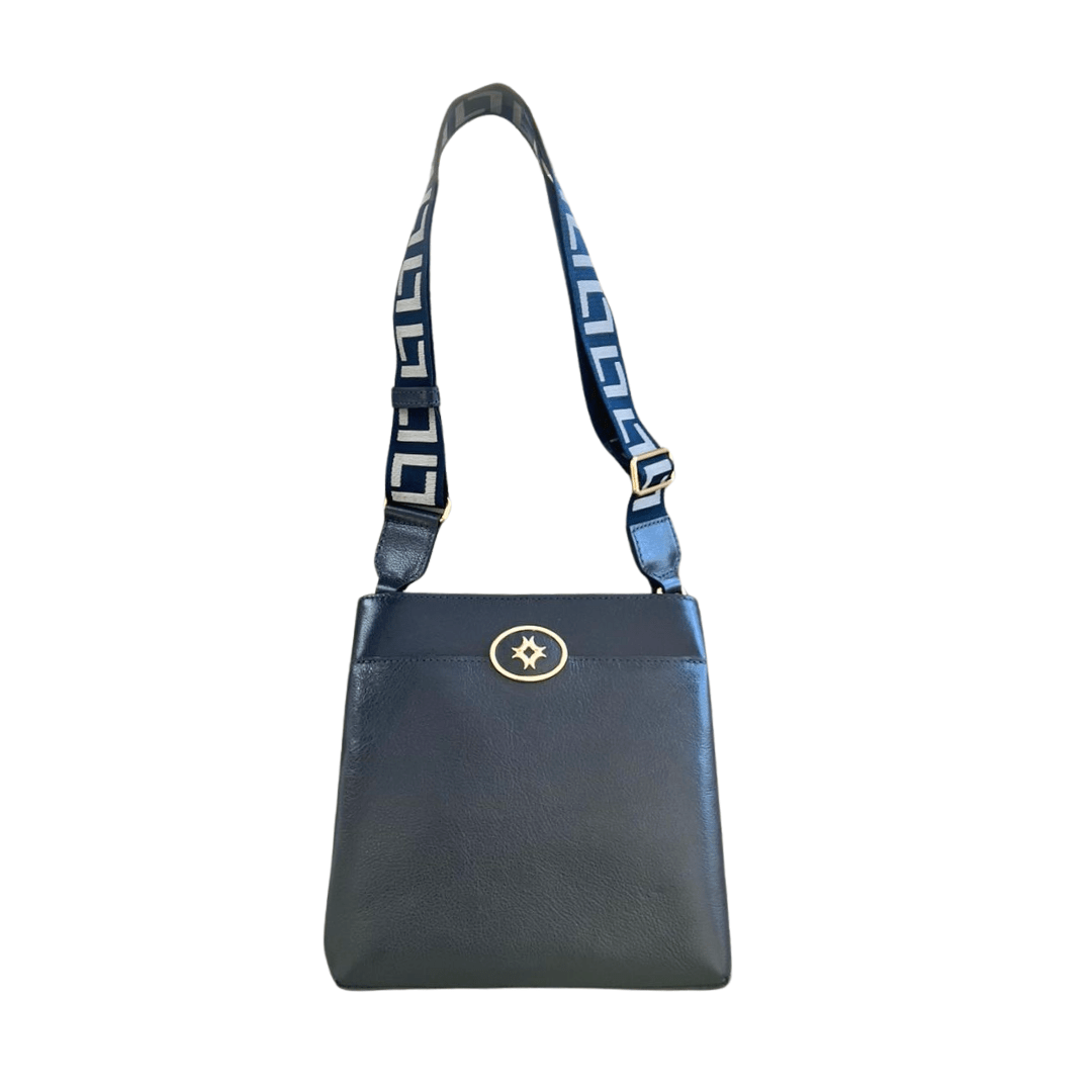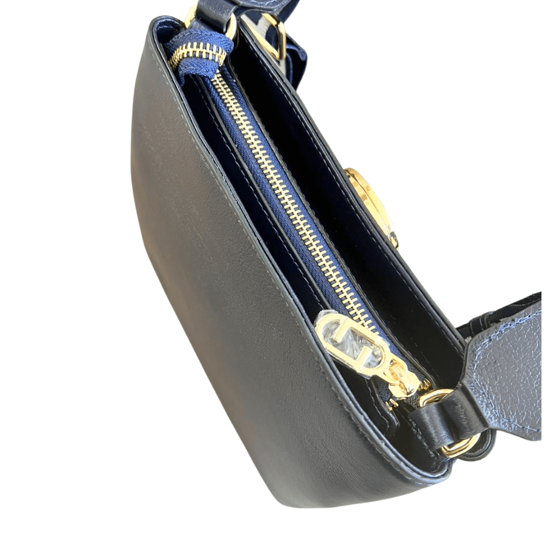 A Bolsa Luz da Lua Netuno Azul é a escolha ideal para mulheres que valorizam design contemporâneo, acabamento impecável e versatilidade no uso. Produzida em couro legítimo, esse modelo apresenta alça larga em gorgorão exclusivo com monograma da marca, que garante conforto e um toque moderno ao visual. O detalhe dourado com a logo Luz da Lua na parte frontal adiciona elegância e reforça o DNA premium da peça.