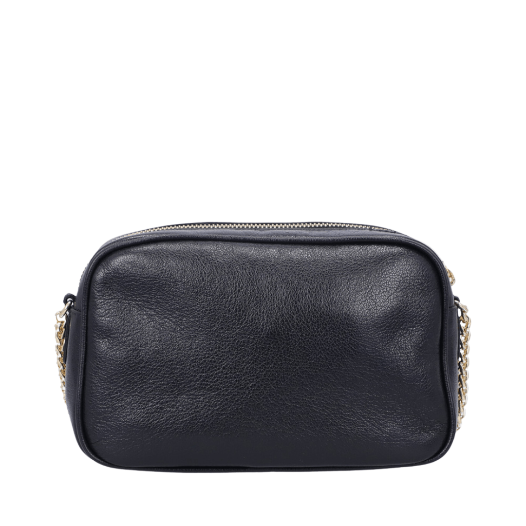 Estilo atemporal: Design estruturado, acabamento em couro legítimo e detalhe em corrente valorizam o visual.