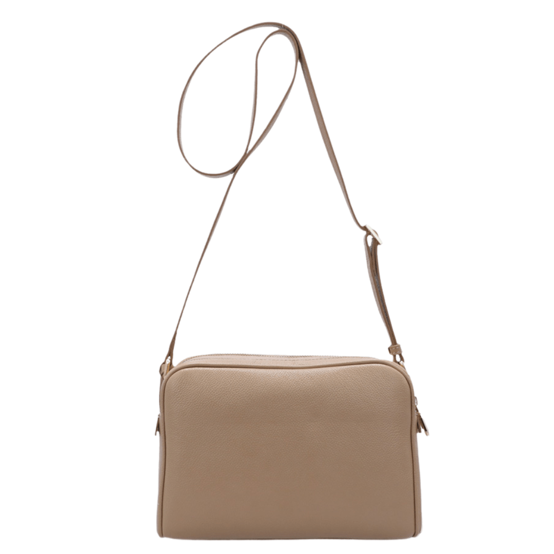 - Visual elegante e atemporal: O acabamento em couro latte e o formato estruturado tornam esta bolsa uma peça coringa para qualquer ocasião.