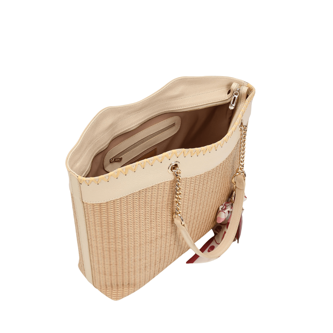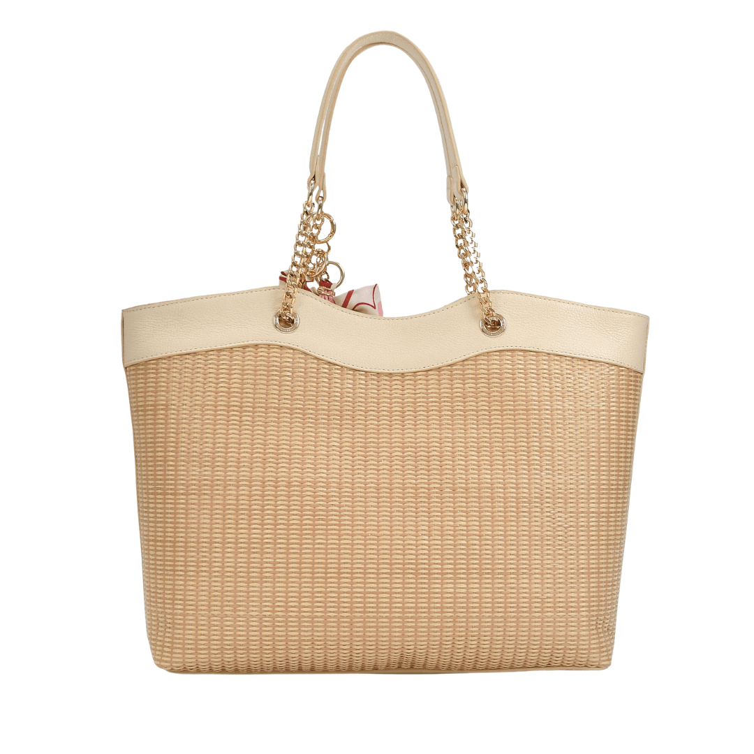 Bolsa Shopping Feminina Jorge Bischoff Couro e Ráfia Nude