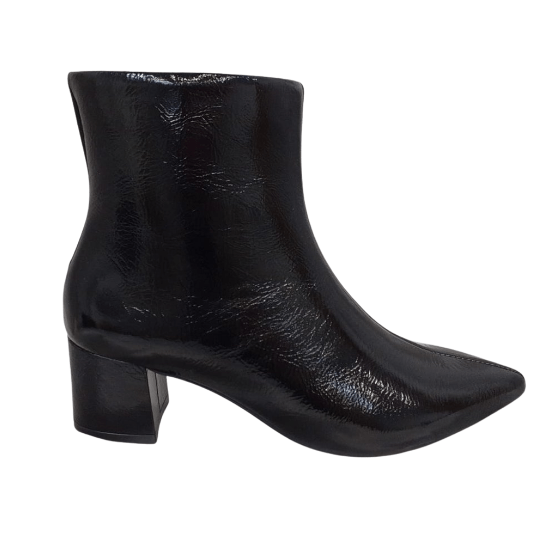 Bota Berti Maria Feminina Cano Curto Preto Couro Verniz