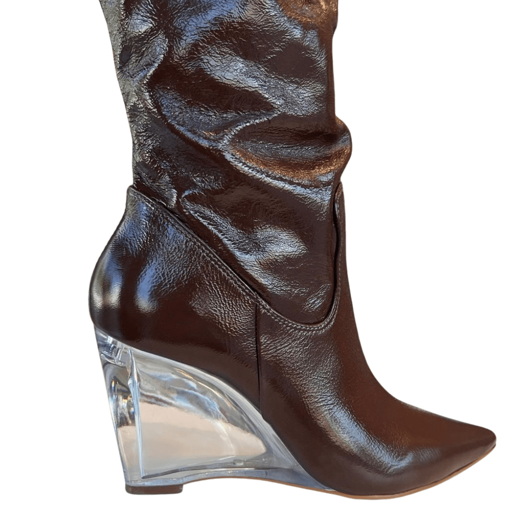 Estética Futurista: O salto em acrílico adiciona um toque de modernidade e leveza visual, diferenciando o modelo das botas convencionais.