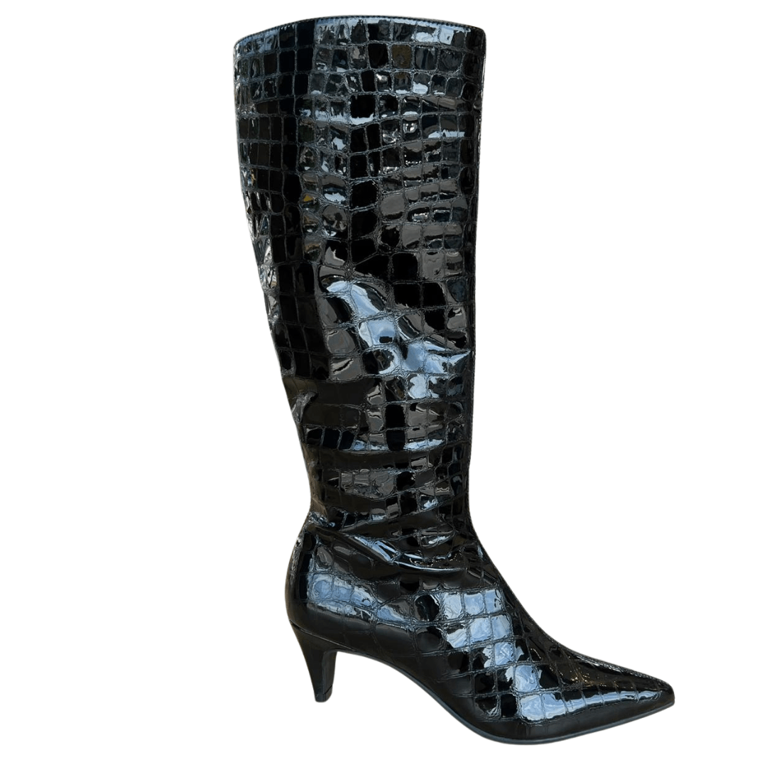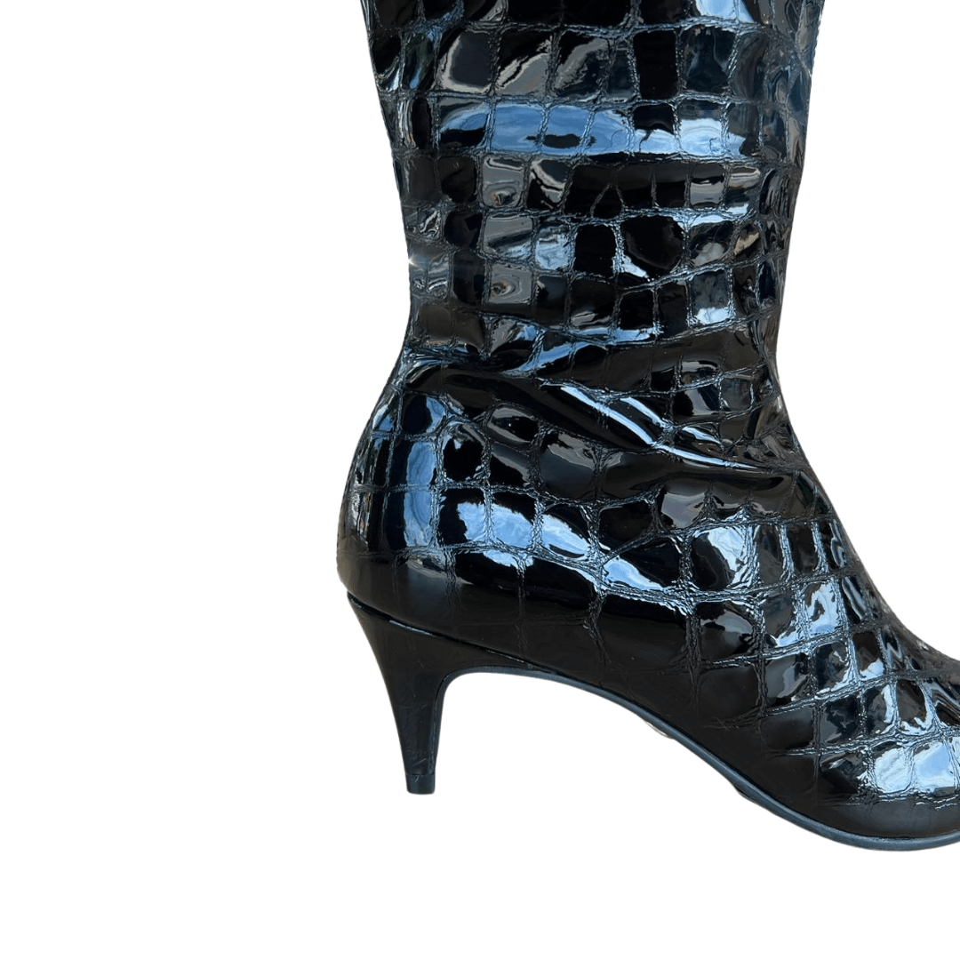 Bota Jorge Bischoff Cano Alto Preta Couro Croco – O Poder da Textura e do Design Premium