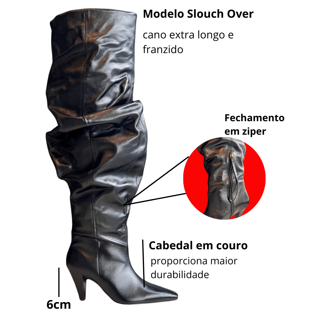 Não aceite o básico. Garanta agora a sua Bota Slouchy Over em Couro e eleve seu estilo ao patamar das grandes passarelas.