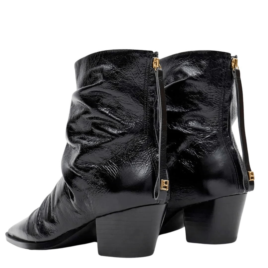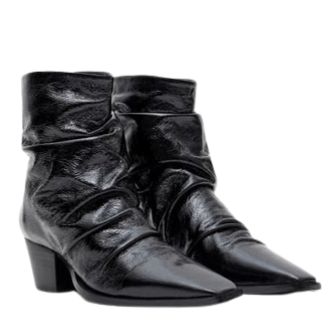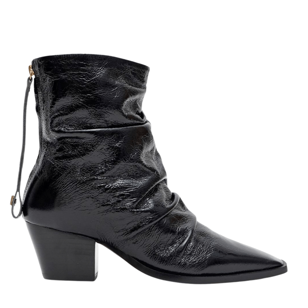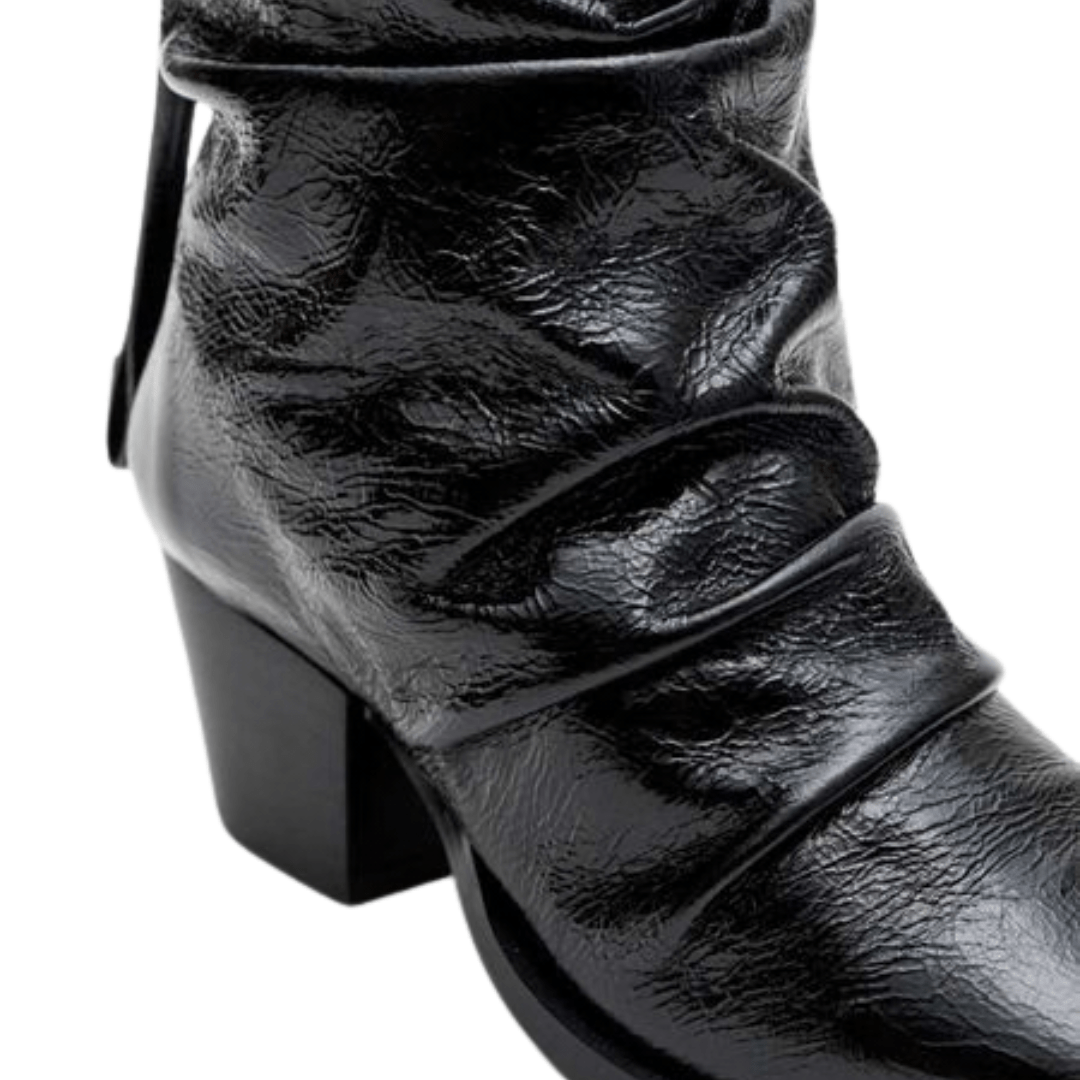 A Bota Lança Perfume Slouchy é a peça ideal para mulheres que desejam um visual único e cheio de personalidade. Confeccionada em couro com acabamento em verniz, este modelo de cano médio destaca-se pelo seu efeito franzido proposital, que adiciona textura e modernidade imediata ao look. Com um tom preto profundo e um brilho marcante, ela é a escolha estratégica para quem quer se destacar com sofisticação e uma dose extra de atitude.
