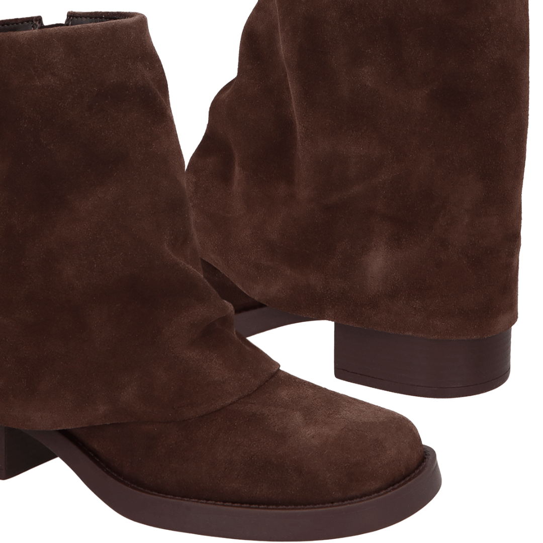 Para a mulher que deseja um calçado que foge do convencional, a Bota Luiza Barcelos traz uma proposta de design disruptiva. Com sua silhueta única de "capuz" (sobreposição), ela apresenta um visual ajustado no topo e levemente mais amplo na base, criando um desenho moderno e marcante. Confeccionada em camurça na cor marrom café (Coffee), esta bota é o equilíbrio perfeito entre a estética contemporânea e a personalidade forte.