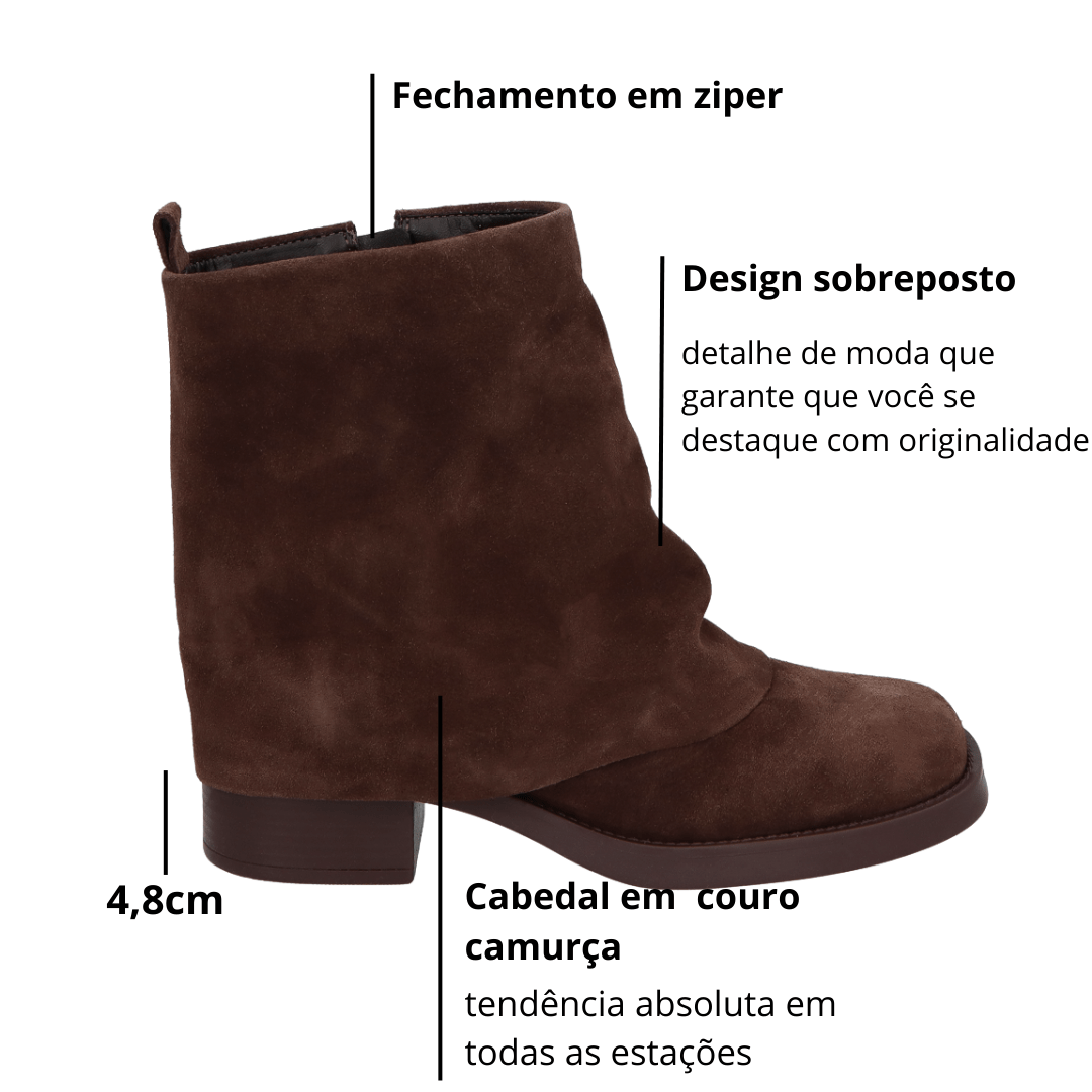 Seja a referência de moda com um design que redefine o clássico. Adicione a Bota Cano Curto Sobreposto Coffee ao seu carrinho e sinta o poder de se destacar.