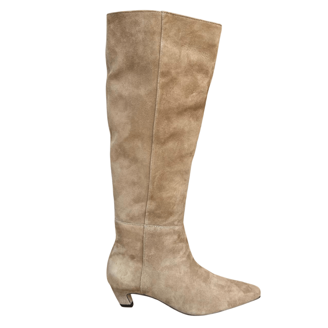 Esta bota é a aposta perfeita para looks de alto impacto. Para um visual fashionista urbano, combine-a com vestidos de tricot midi ou saias com fendas generosas que revelem o cano longo da bota. Se a ideia é uma produção monocromática sofisticada, aposte em peças em tons de bege, cinza ou off-white, deixando a textura da camurça trazer profundidade ao look. Ela também harmoniza perfeitamente com calças skinny de couro ou leggings térmicas para um visual de inverno ultra refinado.