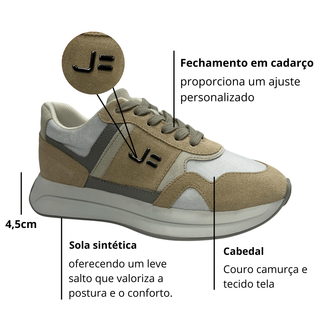 Seja para um passeio especial em família ou para um dia de trabalho com estilo e conforto, o Tênis Jorge Bischoff Feminino Nude é a escolha perfeita. Com um design moderno e sofisticado, este modelo une o charme do couro camurça com a leveza do tecido em tela, garantindo um visual elegante e despojado.