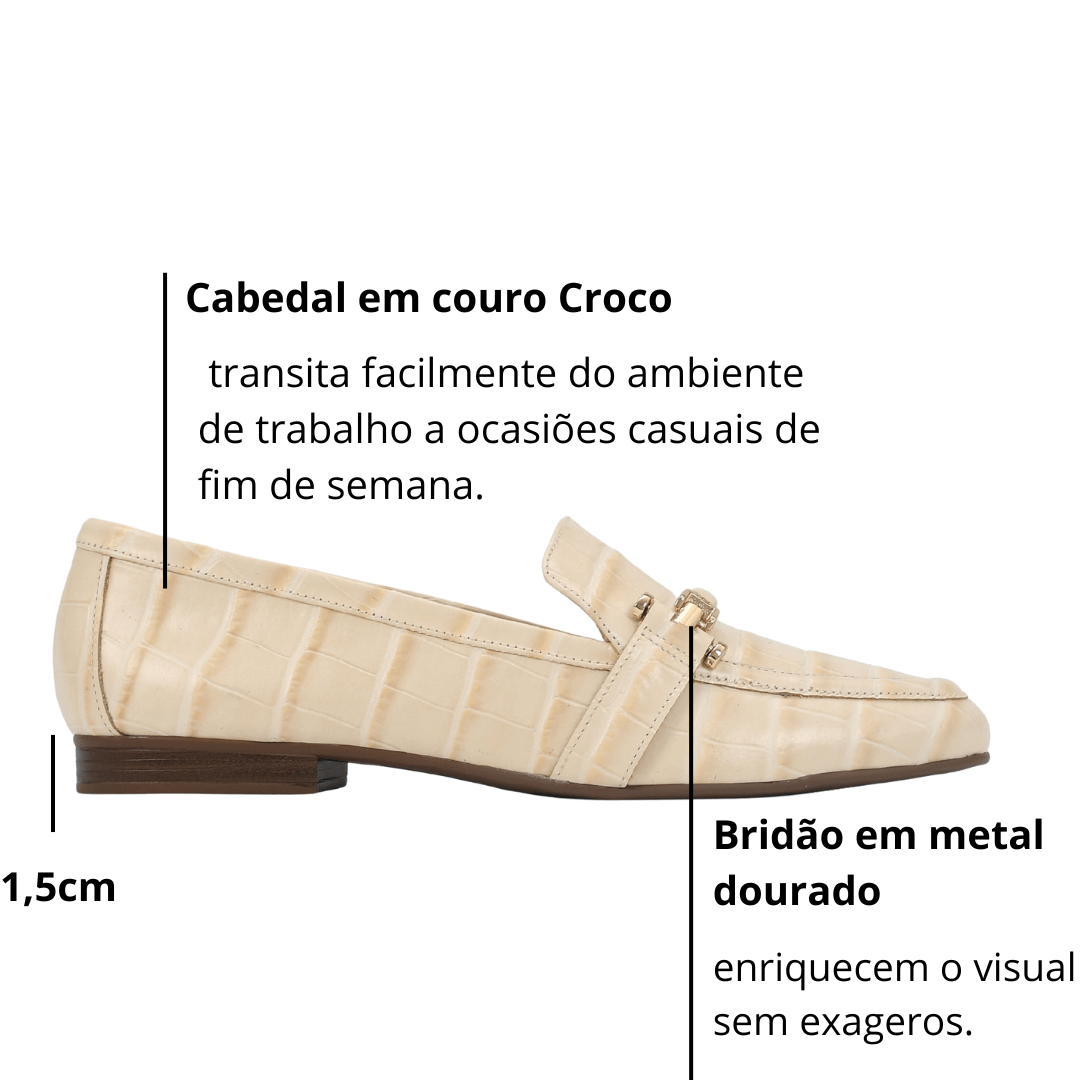 Modelo: Loafer Jorge Bischoff Bridão Off White Couro Croco
