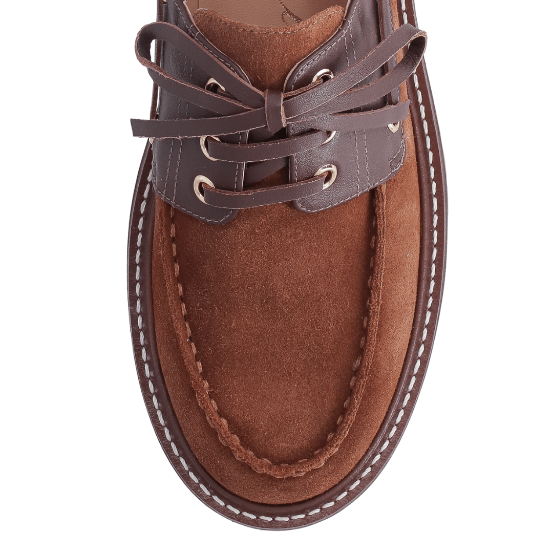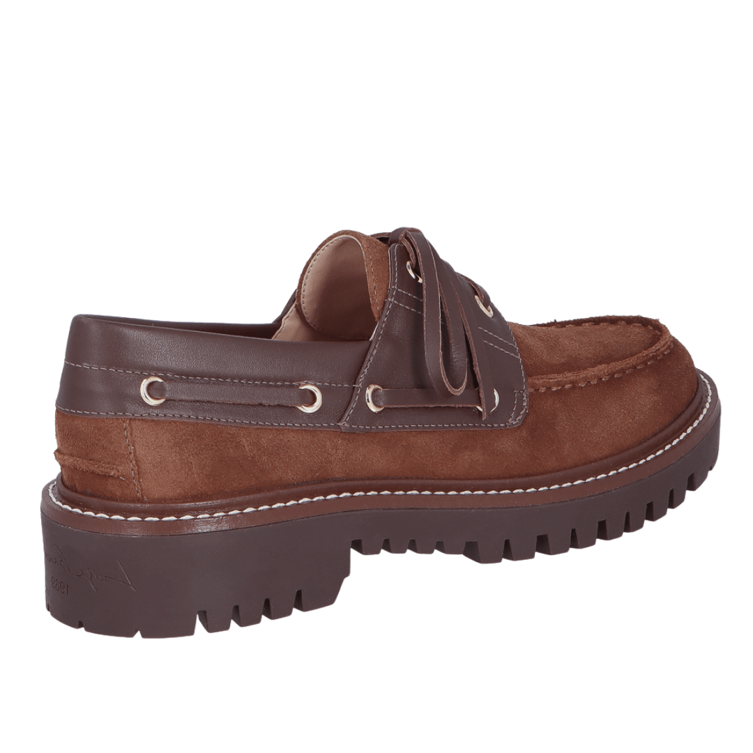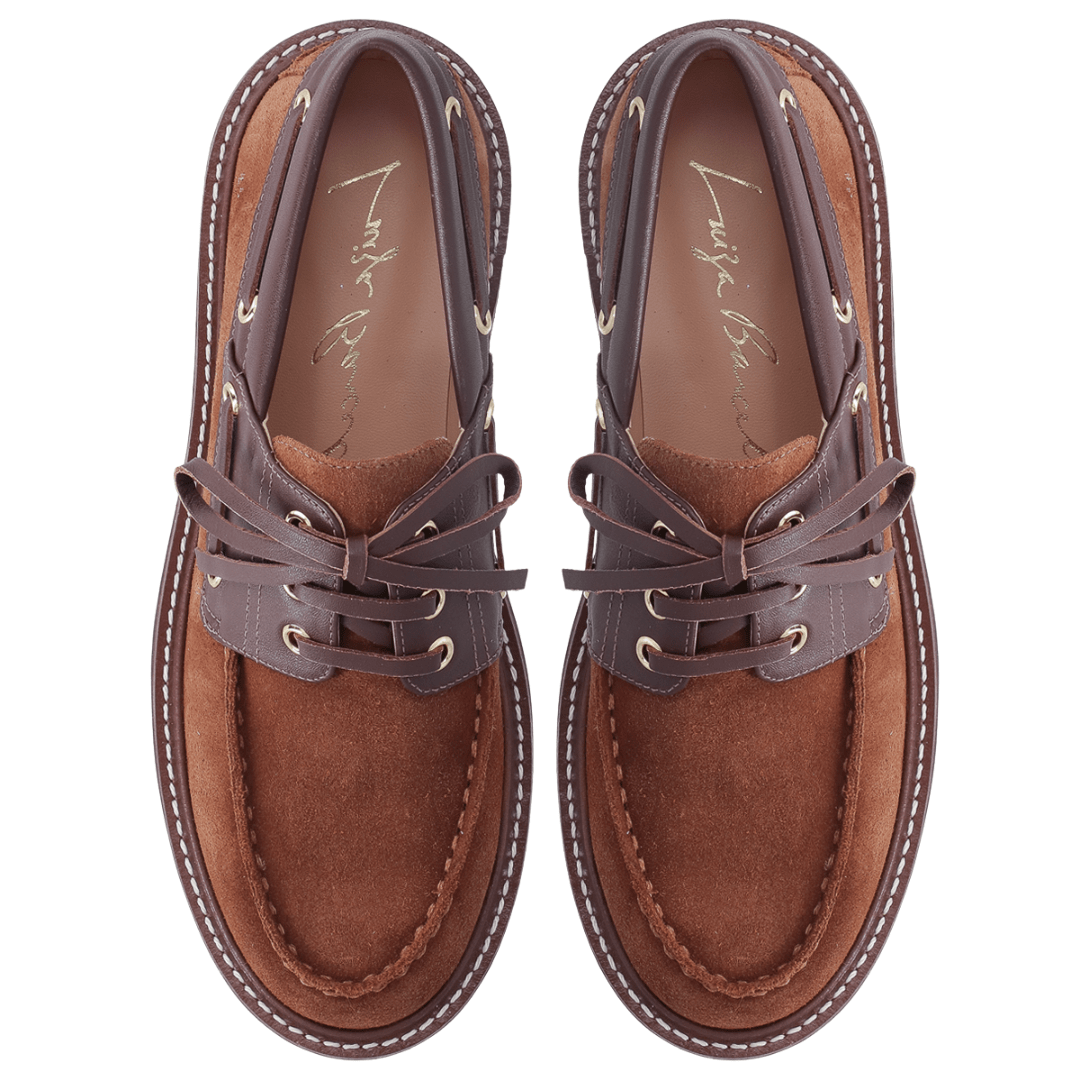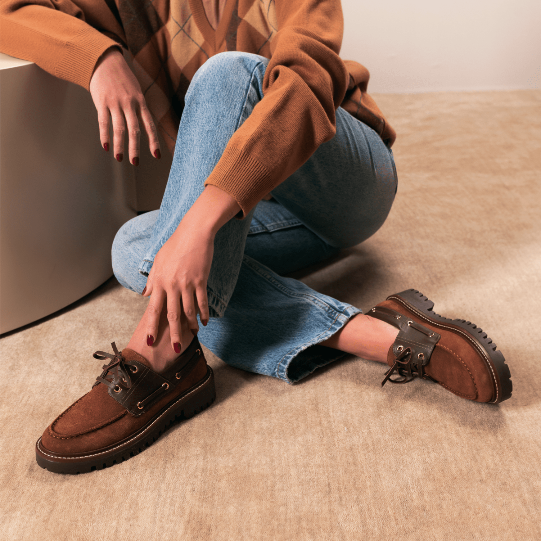 Para a mulher que deseja marcar presença com um visual autêntico e cheio de atitude, o Mocassim Luiza Barcelos é a peça indispensável. Esta versão exclusiva une a sofisticação da camurça no tom caramelo com o contraste moderno do couro marrom e do solado tratorado. Inspirado na estética náutica, mas com uma roupagem totalmente urbana, ele é o calçado que transforma qualquer look básico em uma produção de editorial de moda.