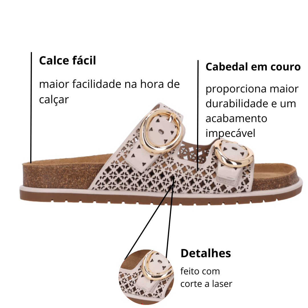 A Papete Flatform Luz da Lua é a união perfeita entre estilo e conforto. Feita para mulheres que valorizam autenticidade, ela combina o charme dos recortes a laser com a sofisticação do couro legítimo, trazendo um visual moderno e leve. Além disso, sua palmilha anatômica garante bem-estar em todos os momentos, seja no dia a dia ou em ocasiões casuais.