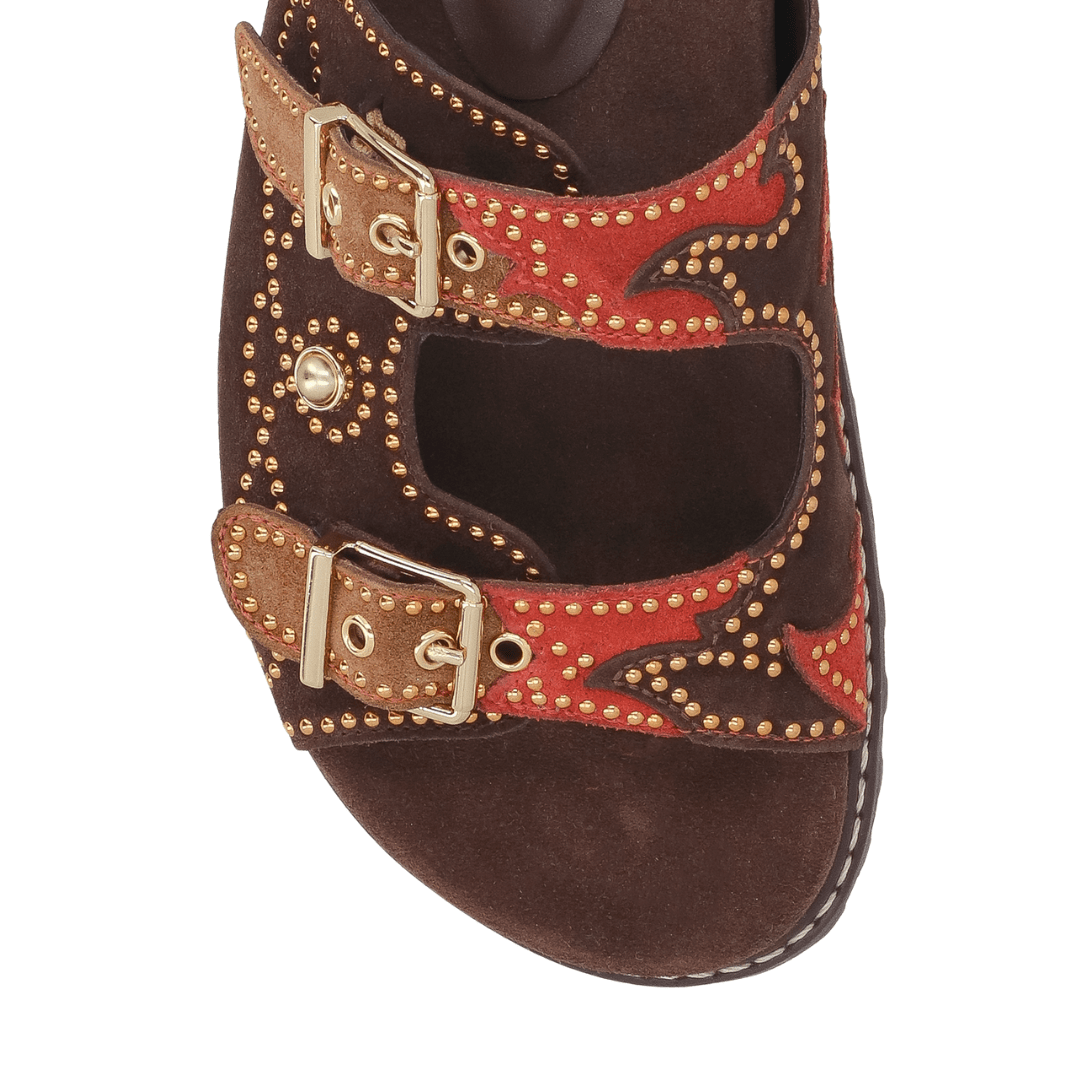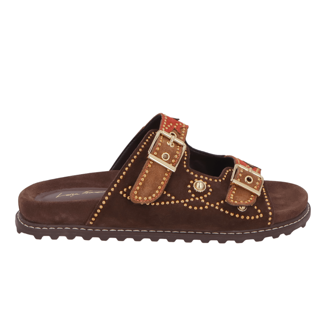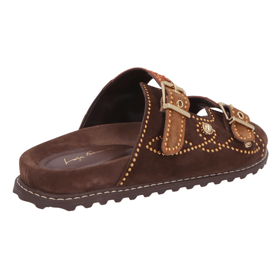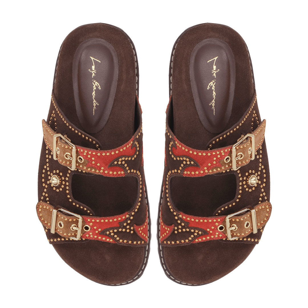 Papete Luiza Barcelos Feminina Aplicações Coffee Caramelo Caiena Couro Camurça