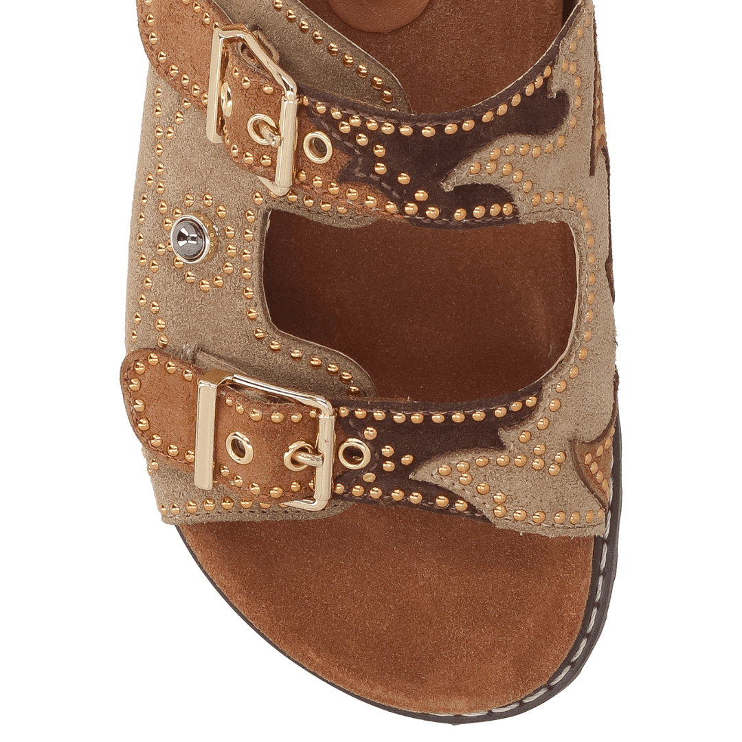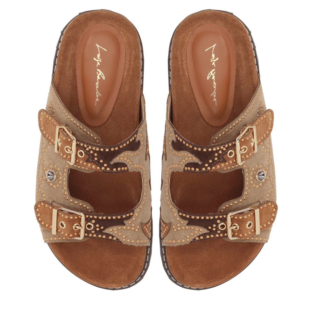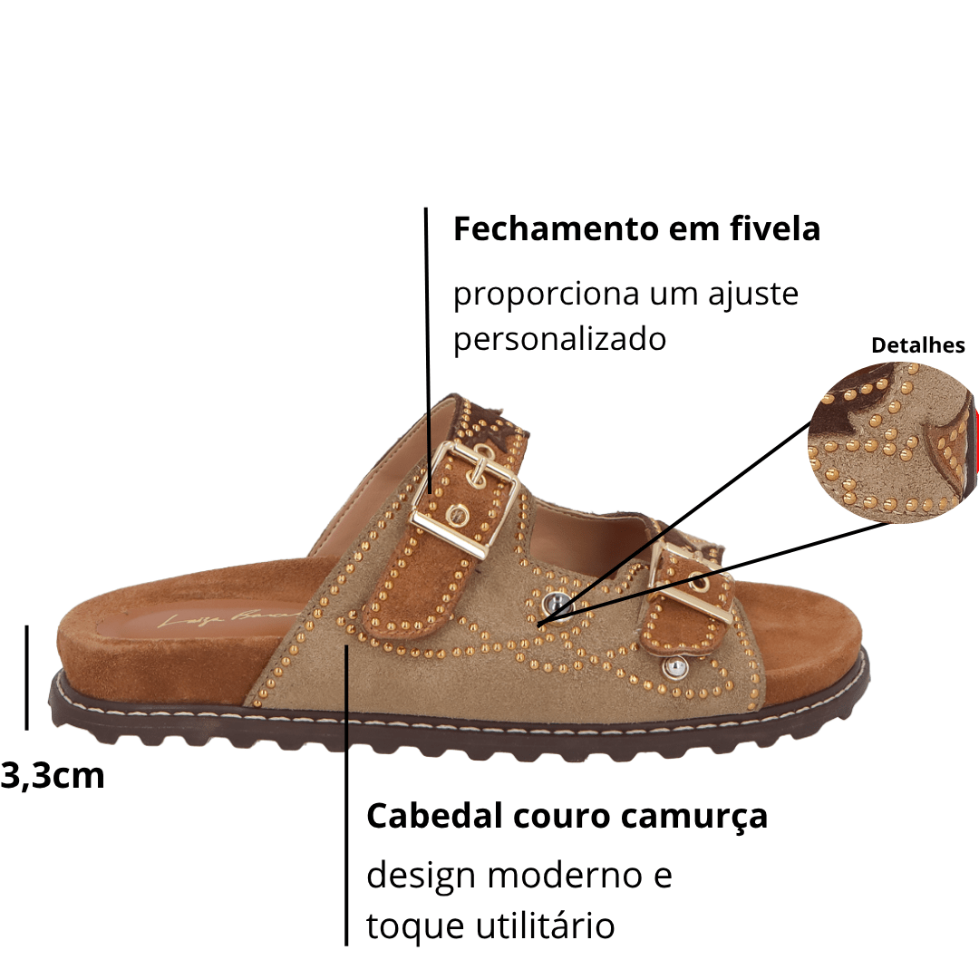 A Papete Luiza Barcelos Fendi é a união perfeita entre estilo e conforto. Com design moderno e toque utilitário, ela traz o charme do couro camurça em um tom neutro que combina com tudo. Suas tachas douradas e detalhes contrastantes em caramelo elevam o visual, adicionando personalidade e sofisticação. Ideal para quem busca um calçado prático, versátil e cheio de atitude para o dia a dia.