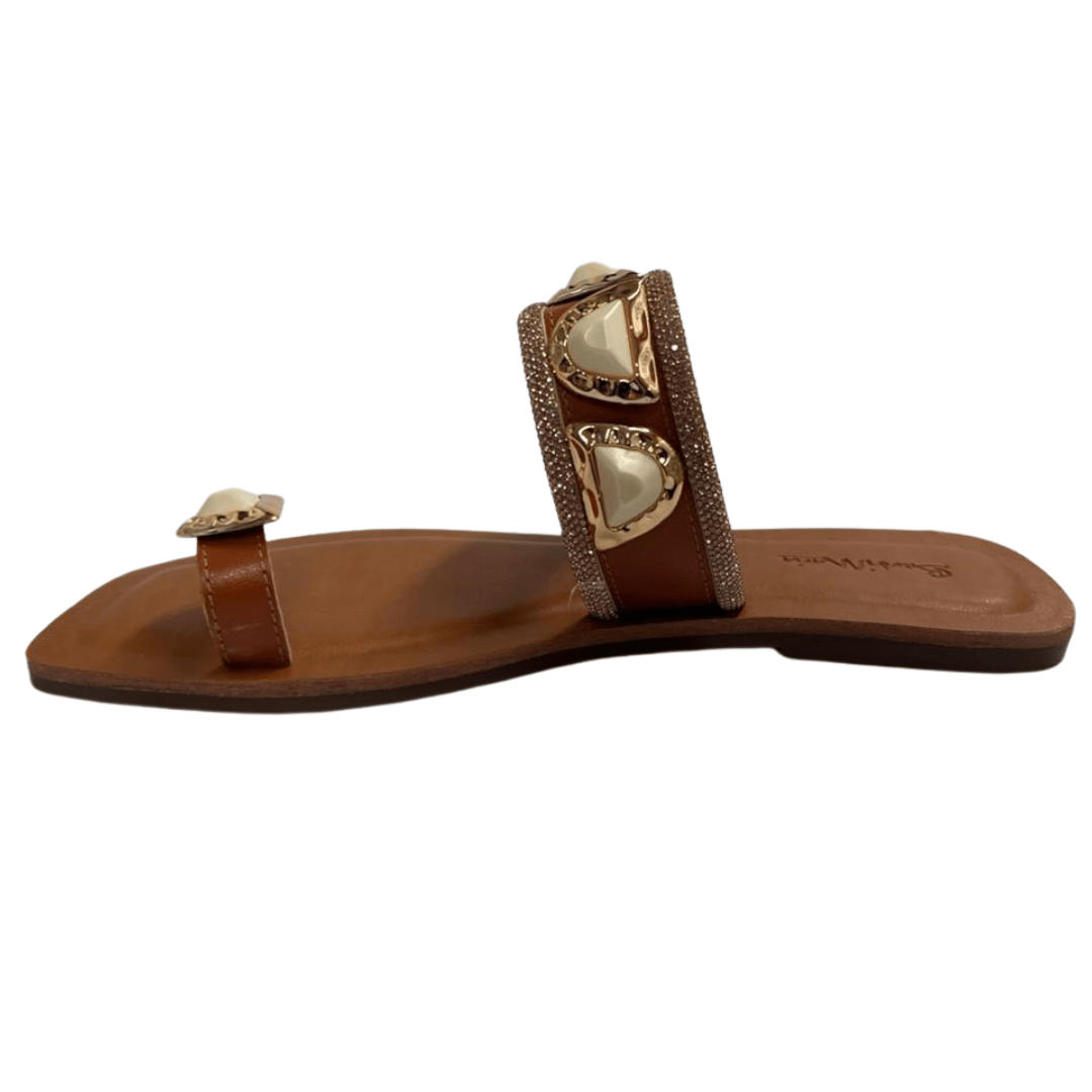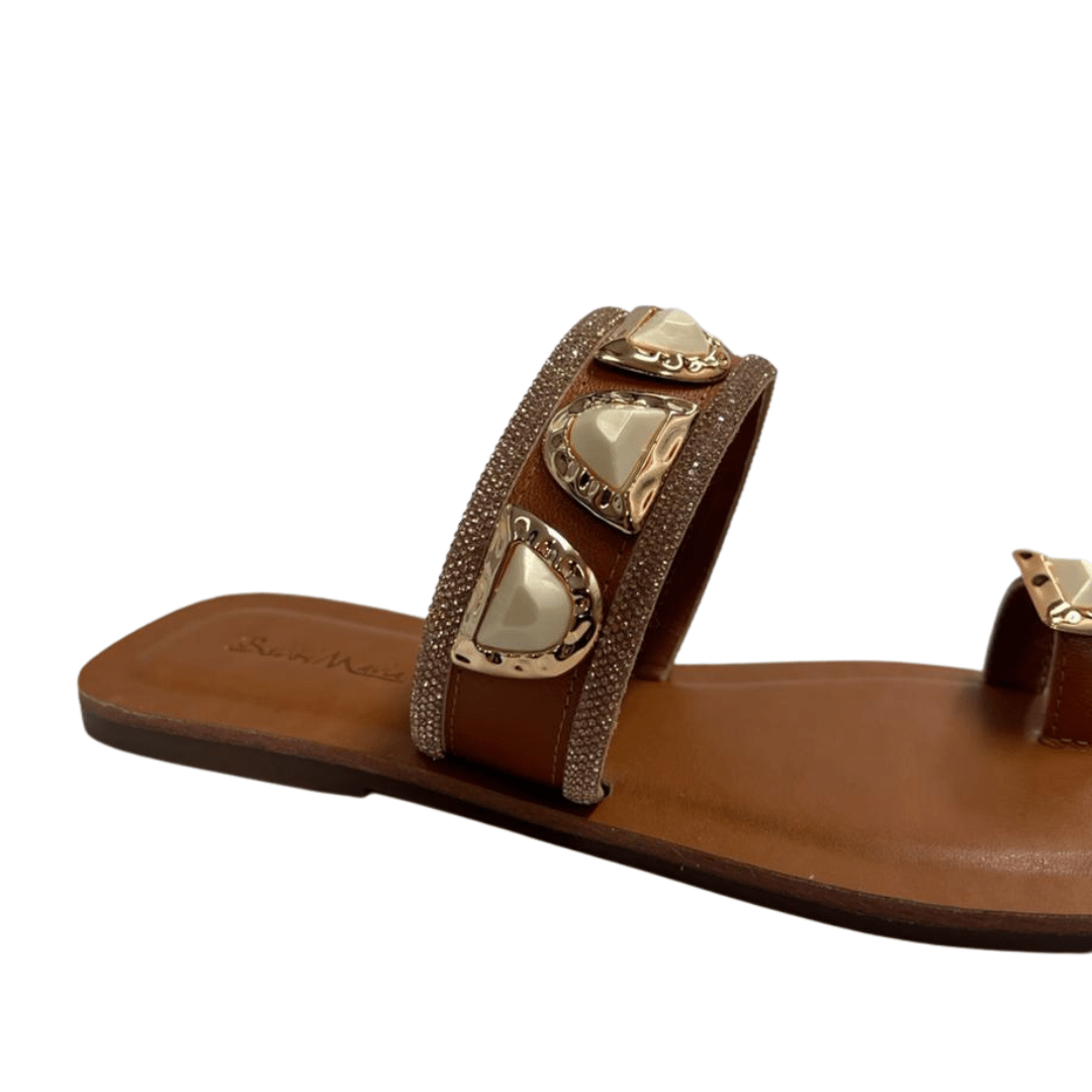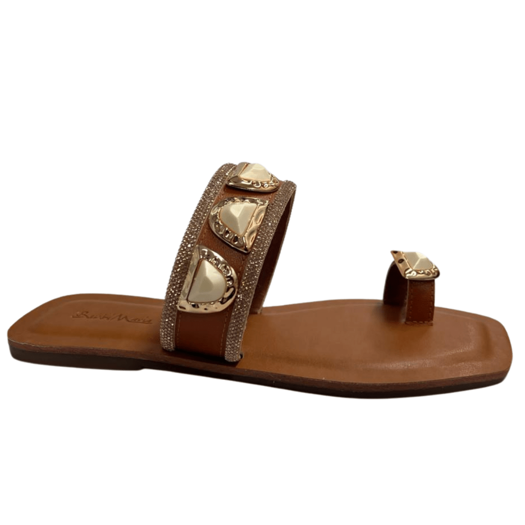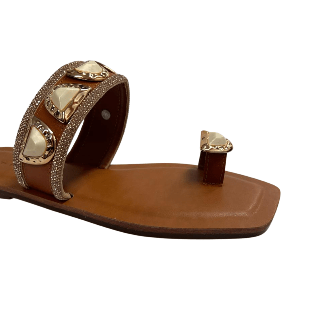 Rasteira Dedinho Berti Maria Feminina Strass Caramelo Champagne Couro
