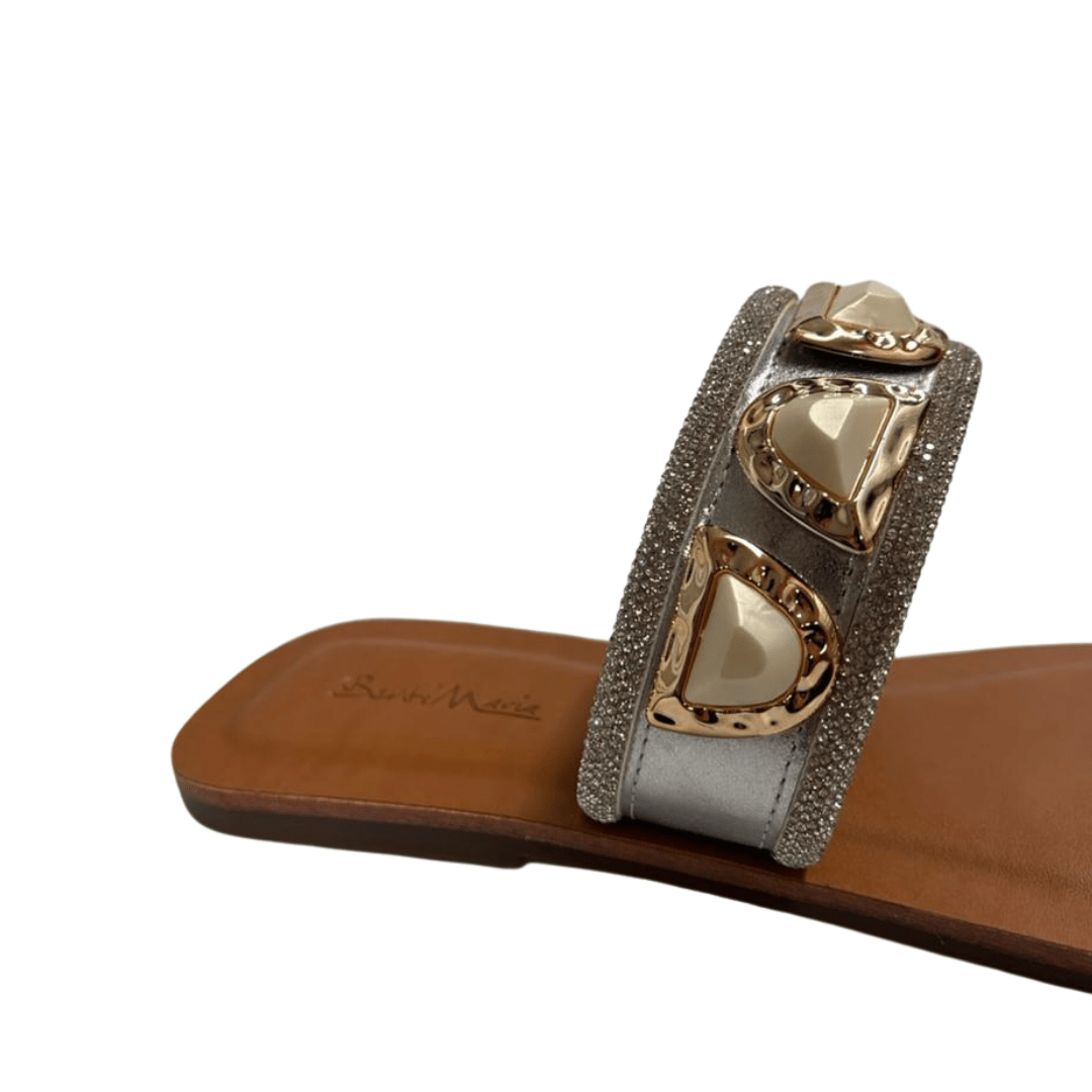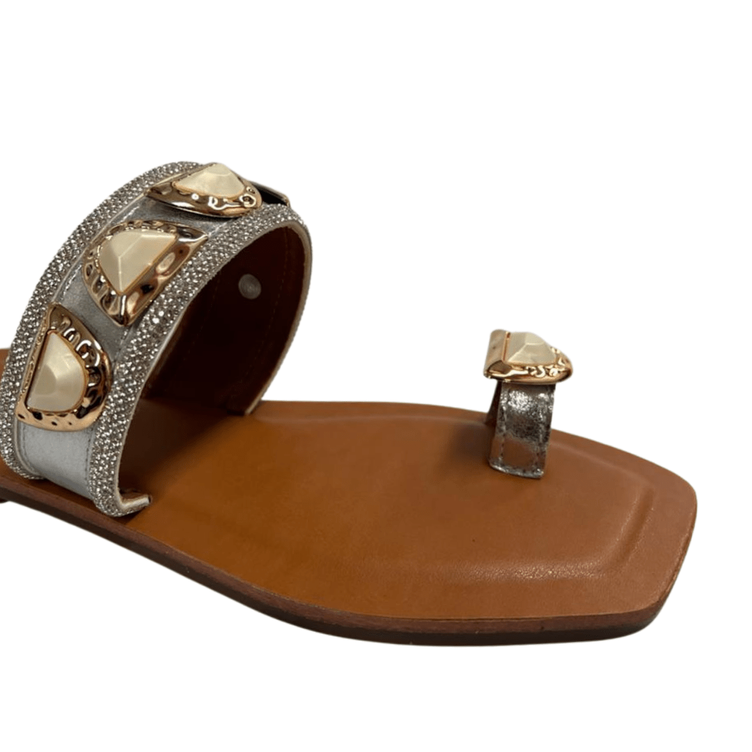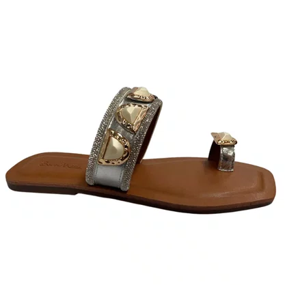 Rasteira Dedinho Berti Maria Feminina Strass Prata Couro