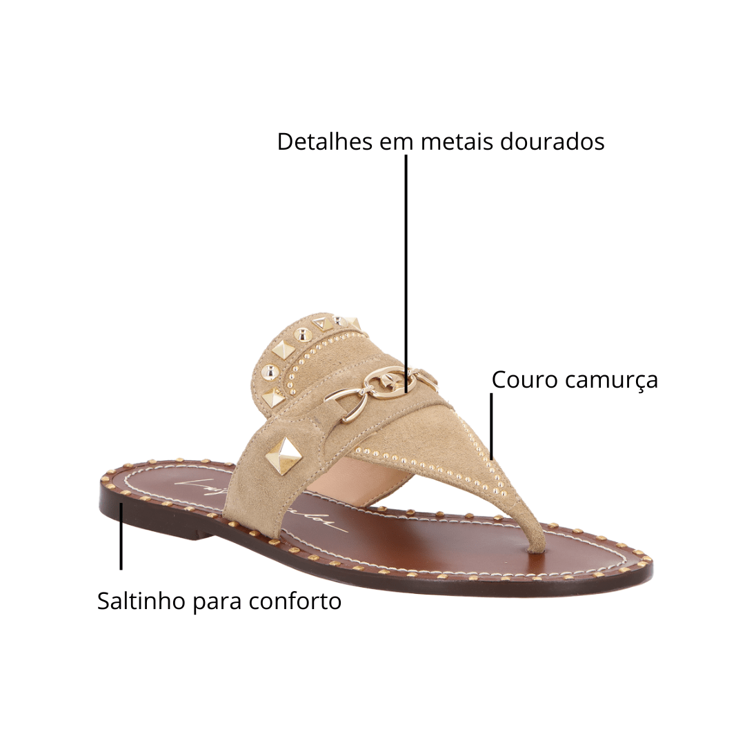 Material: Camurça na cor bege fendi, com toque macio e visual sofisticado