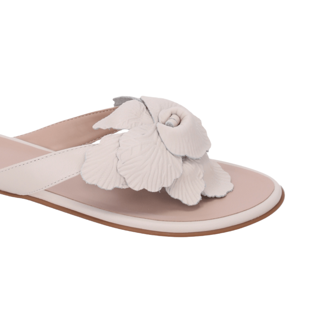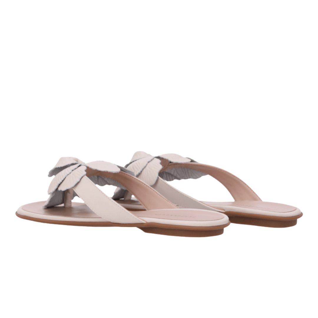 A Rasteira Luz da Lua Panna Couro combina delicadeza e conforto em um design que transita com leveza entre o casual e o elegante.