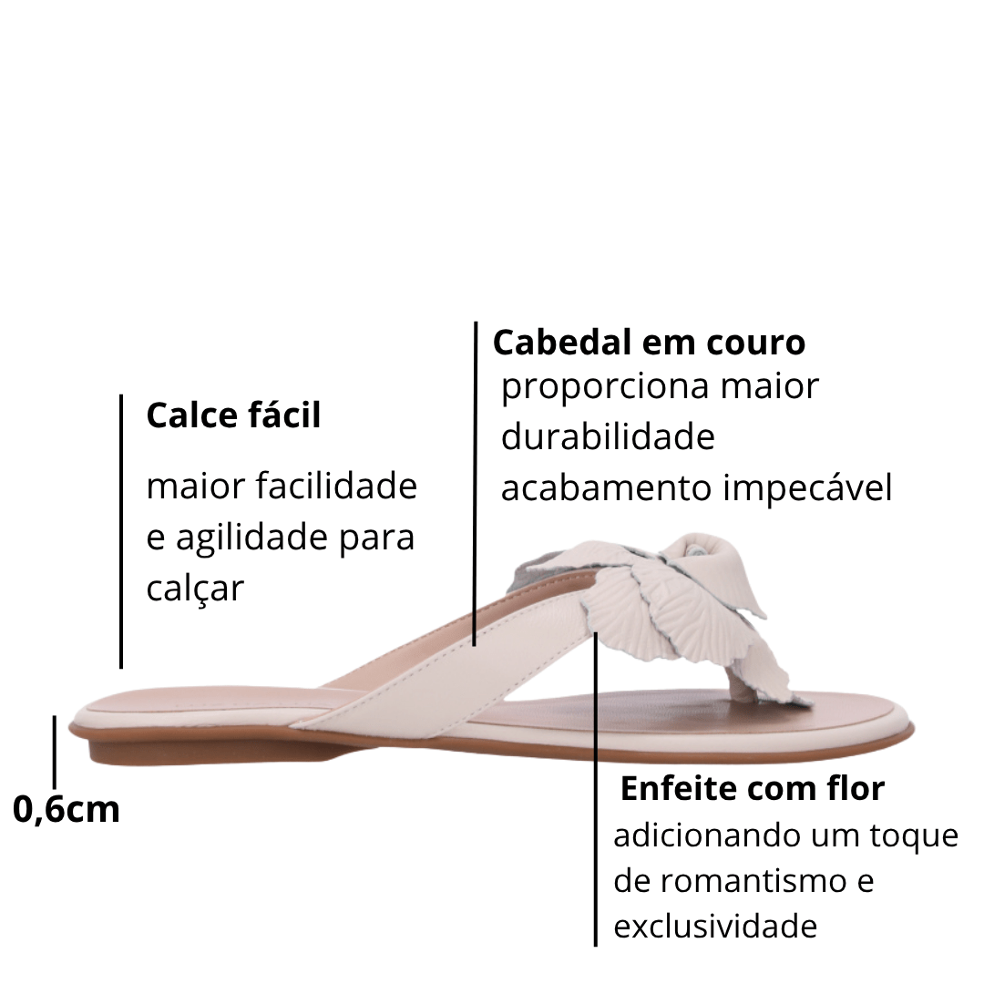 Seu detalhe em flor aplicada traz um toque romântico e sofisticado, enquanto o couro macio e a sola termoflexível garantem bem-estar a cada passo. Ideal para mulheres que buscam beleza, praticidade e estilo no dia a dia — sem abrir mão da elegância característica da Luz da Lua.