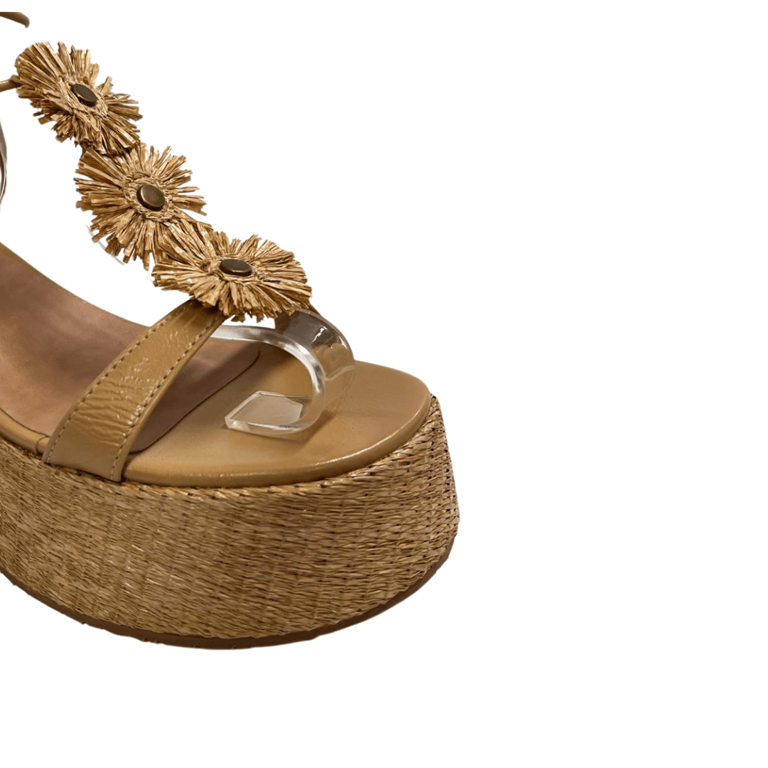 A Sandália Anabela Feminina Amarração Ráfia Trigo Couro é perfeita para quem busca elegância, conforto e um toque artesanal nos looks.