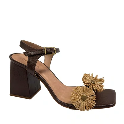 Destaque-se com a Sandália Berti Maria Feminina Salto Bloco Ráfia Marrom Couro e eleve seus looks com elegância e autenticidade.