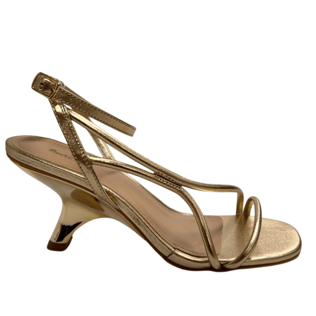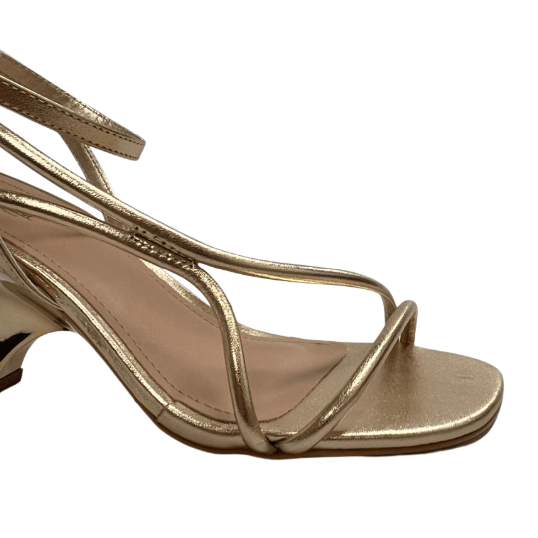 Sandália Berti Maria Feminina Salto Médio Dourado Couro