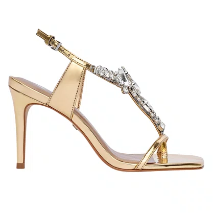 Sandália Carrano Feminina Salto Fino Cristal Dourado Couro