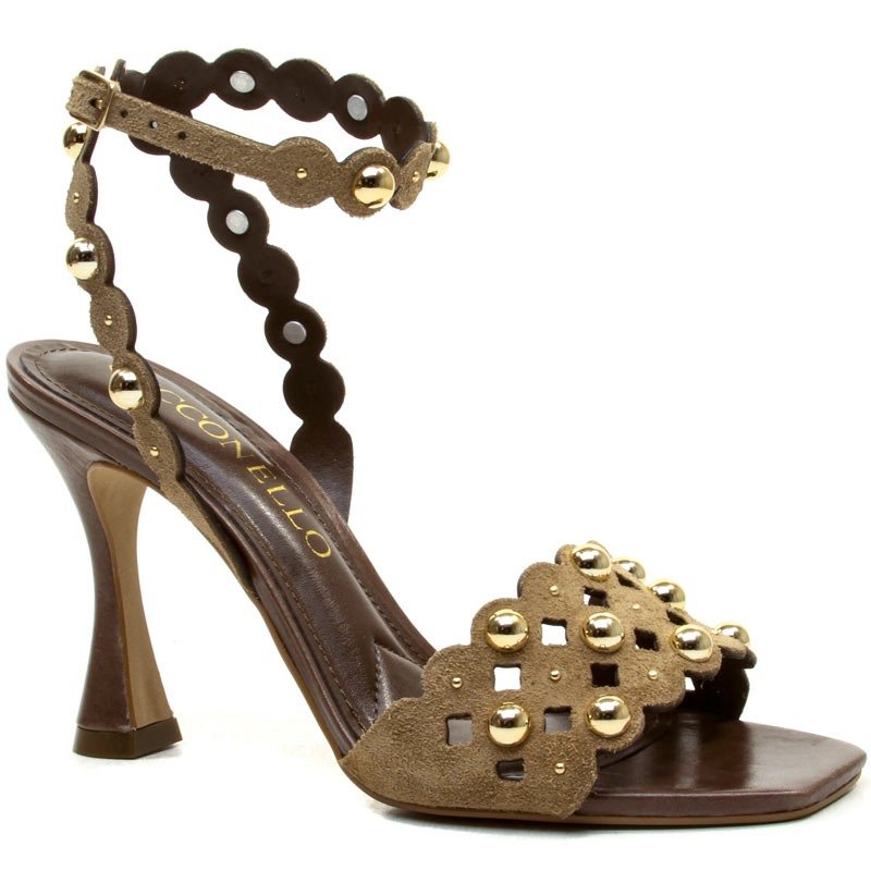 Sandália Cecconello Salto Alto Marrom Couro Camurça