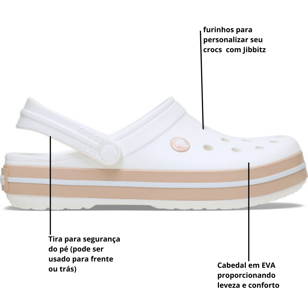 Garanta agora a sua Sandália Crocs Feminina Crocband Clog White Pink Caramel e aproveite a combinação perfeita de estilo, versatilidade e conforto que só a Crocs oferece.