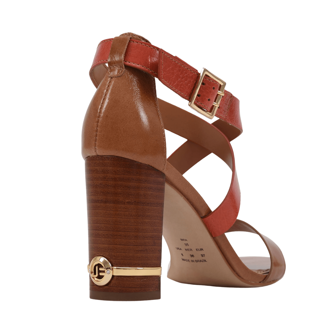 Sandália Jorge Bischoff Feminina Salto Bloco Caramelo Couro Caseinado