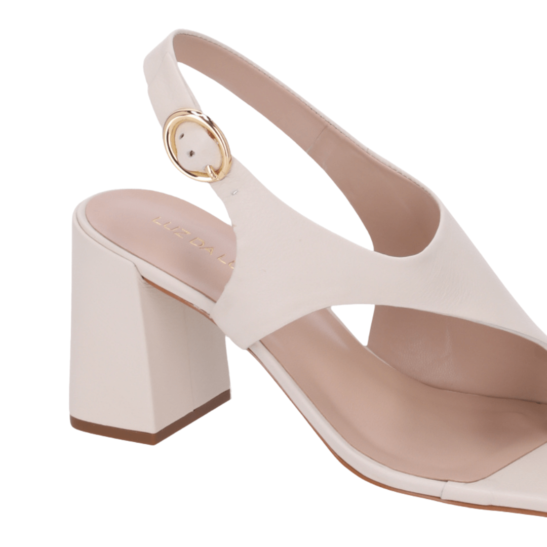 Sandália Luz da Lua efminina Salto Bloco Panna Couro