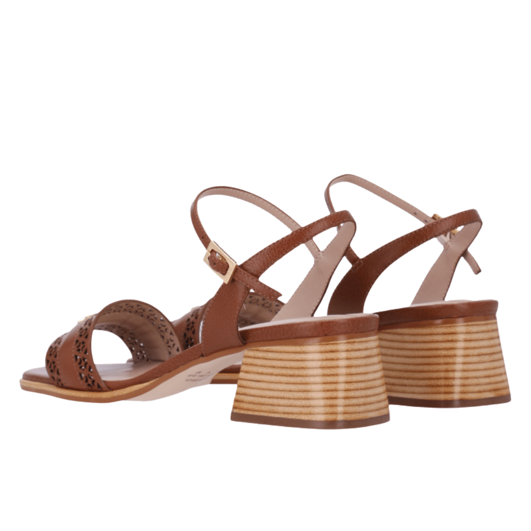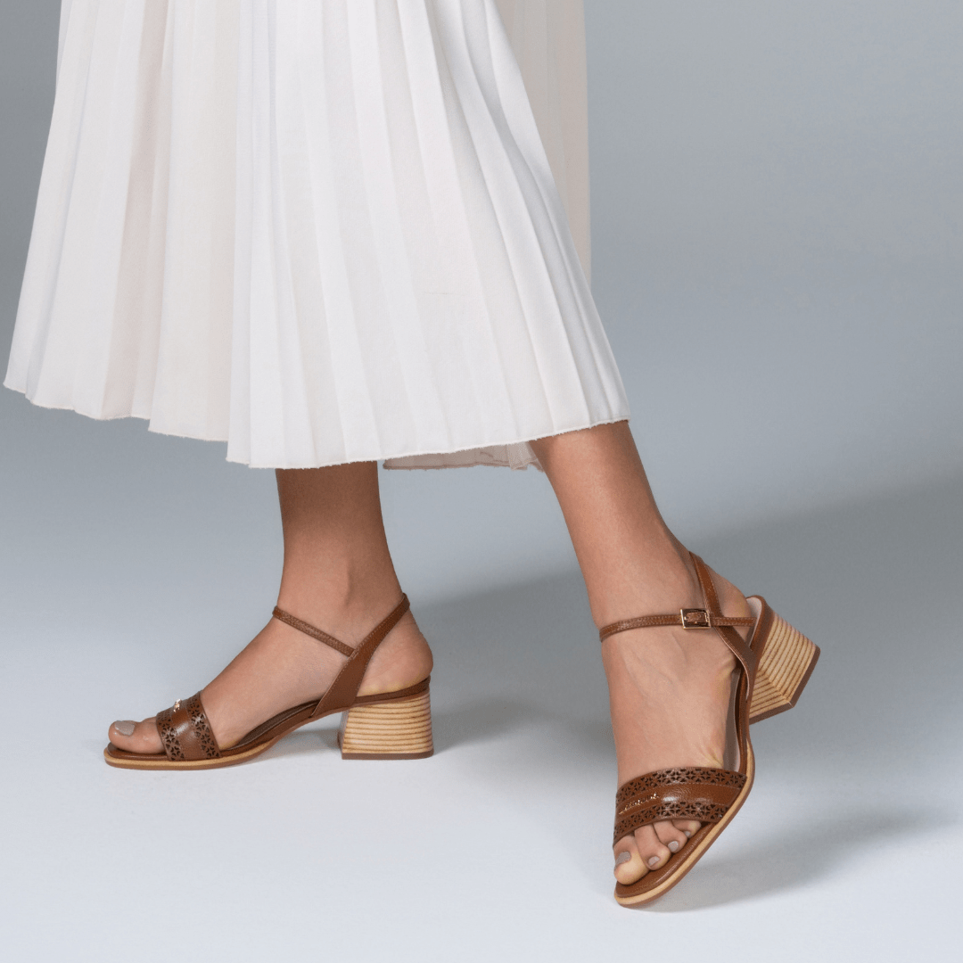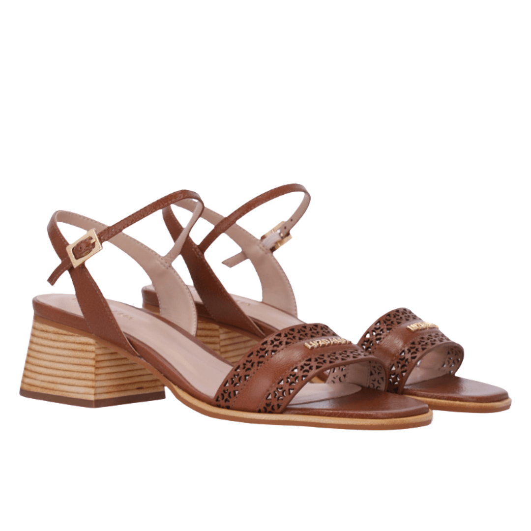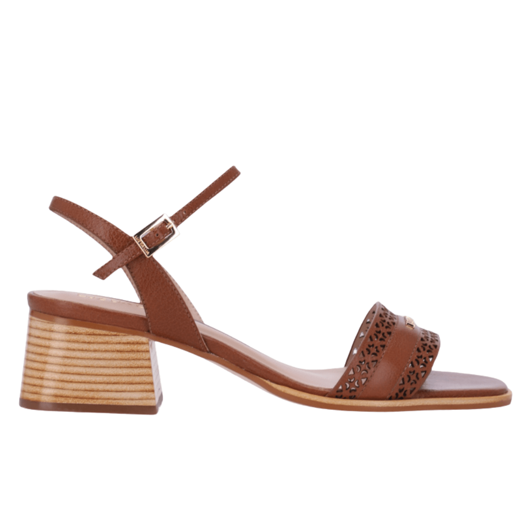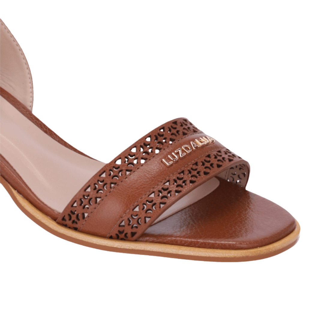 Modelo: Sandália Luz da Lua Feminina alto Bloco Ambar Couro