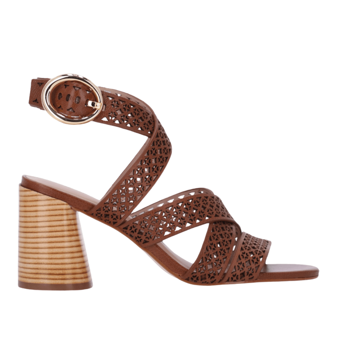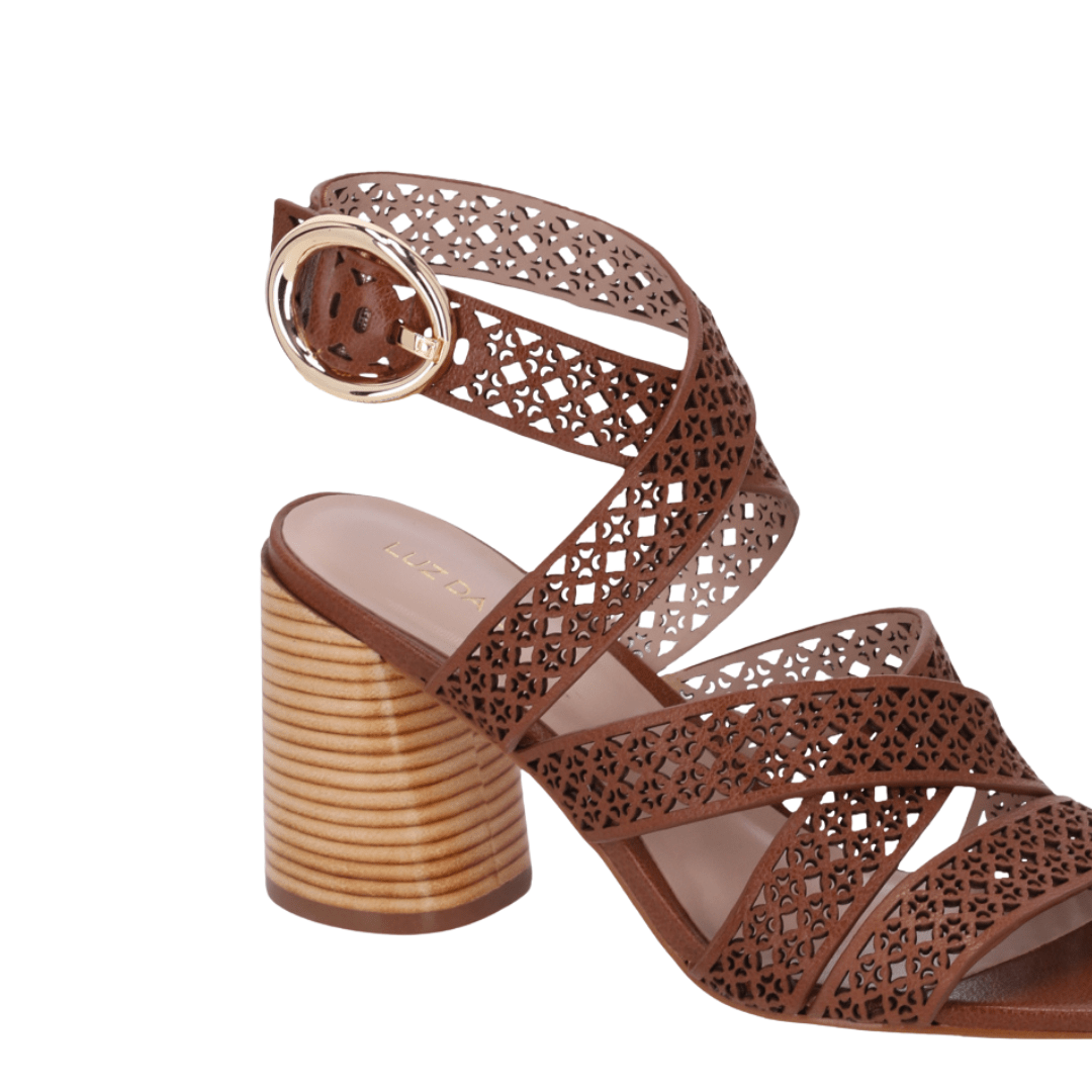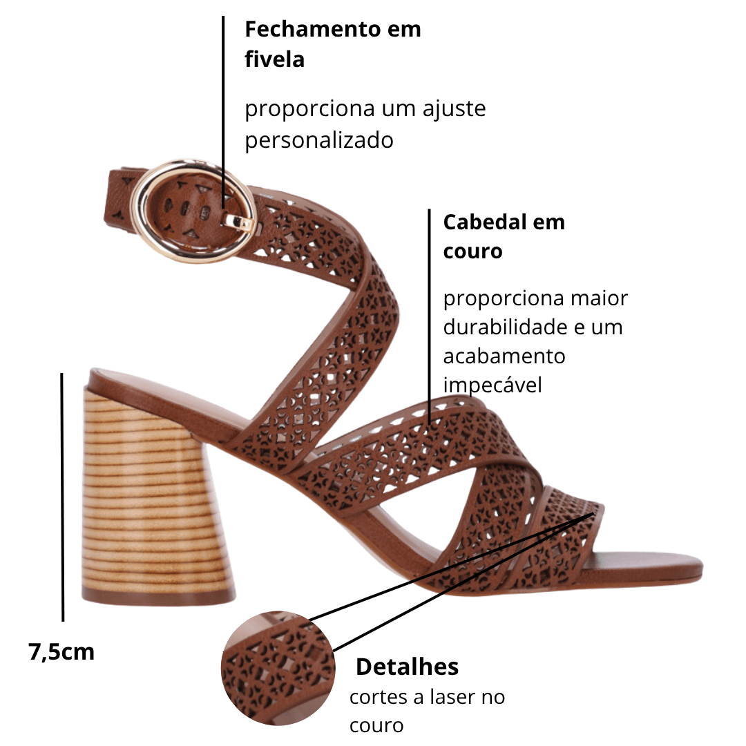 Modelo: Sandália Luz da Lua Feminina Âmbar Salto Bloco Couro