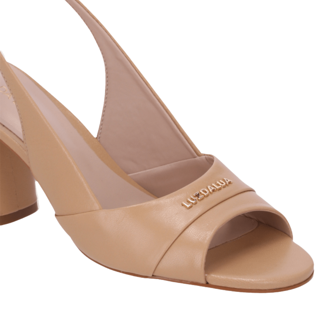 Clientes destacam o conforto surpreendente do salto bloco e a elegância do tom nude, que valoriza diversos estilos. A presença discreta da marca em metal dourado é muito elogiada por seu toque sofisticado e atemporal.
