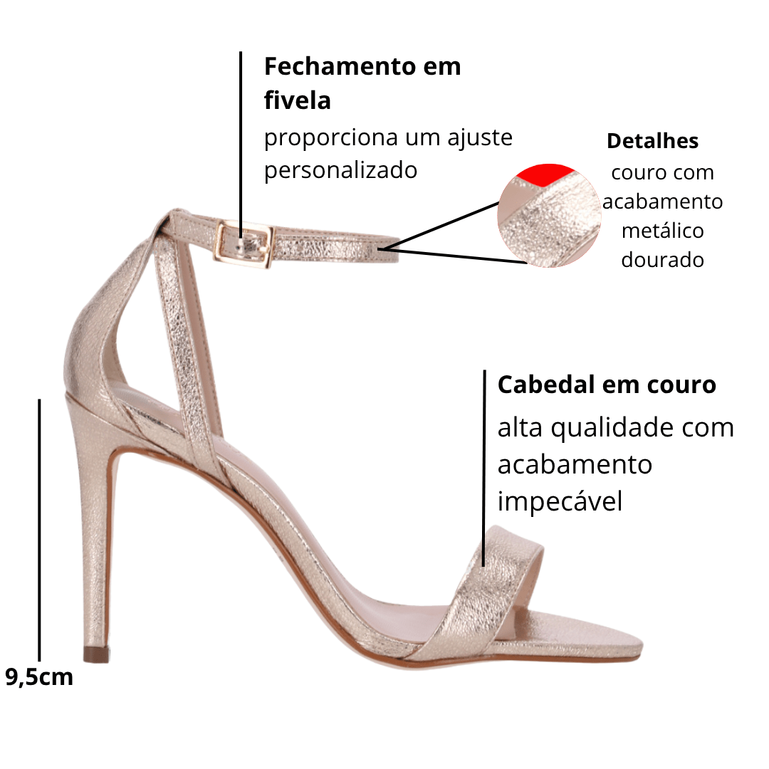 Adicione agora a Sandália Luz da Lua Salto Fino Ouro Couro ao seu carrinho e descubra o poder de um clássico que une luxo, conforto e estilo em cada detalhe.
