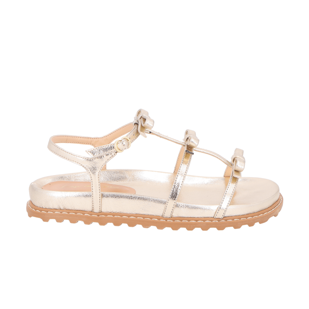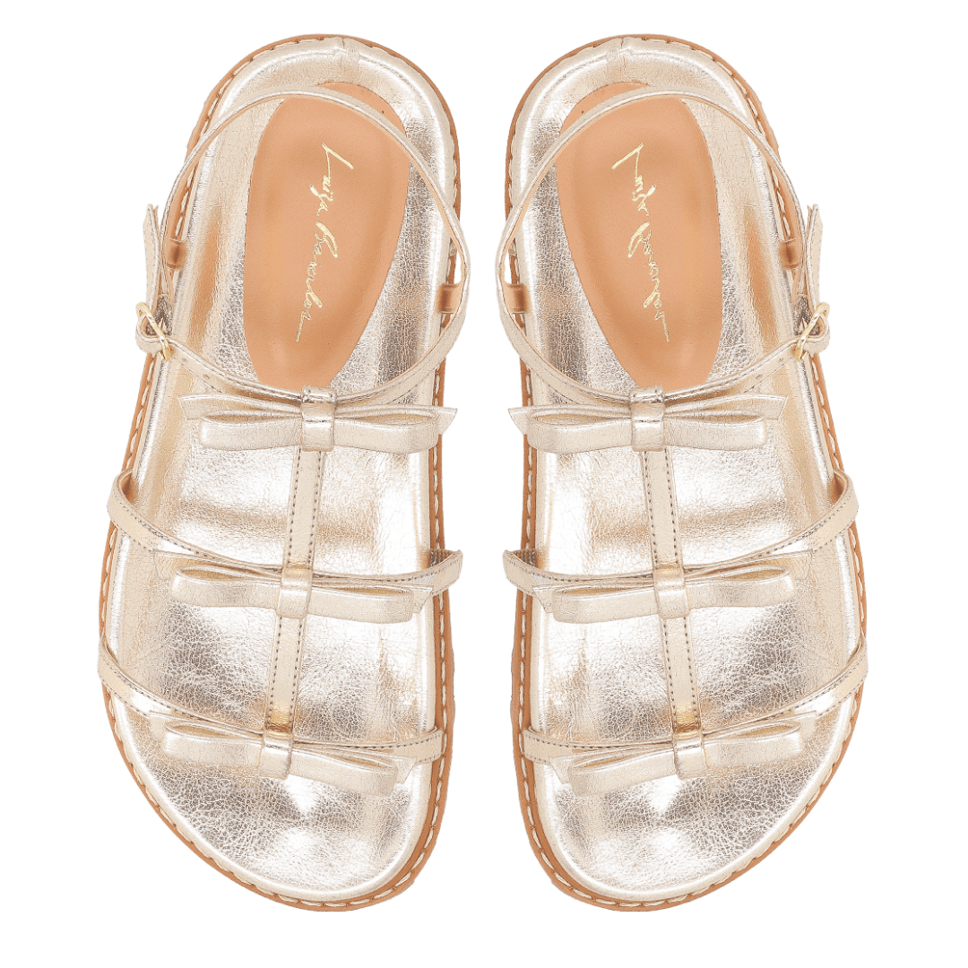 Sandália Papete Luiza Barcelos Feminina Laço Dourada Metalizada