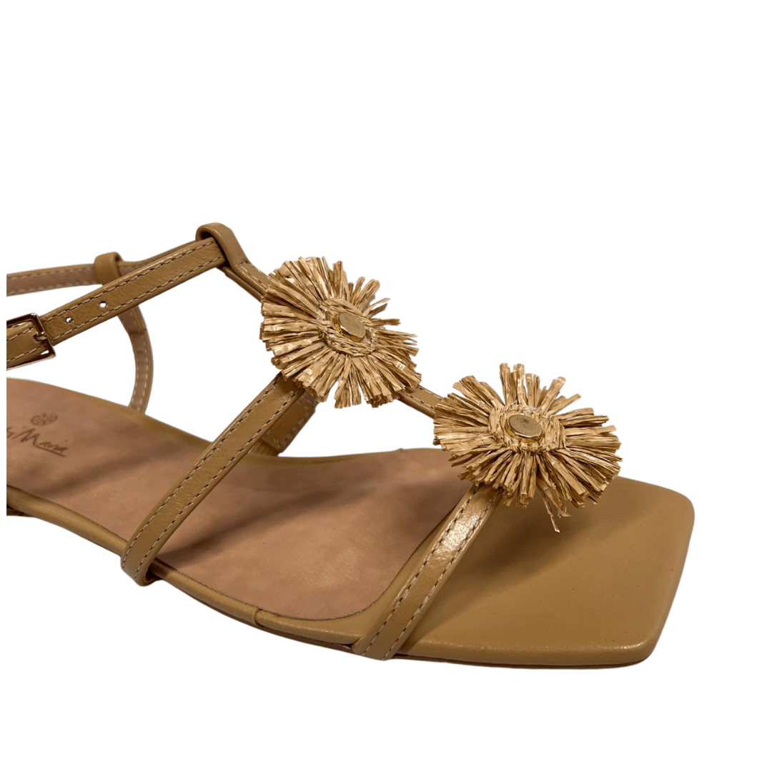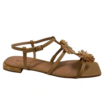 Modelo: Sandália Rasteira Berti Maria Feminina Ráfia Trigo Couro